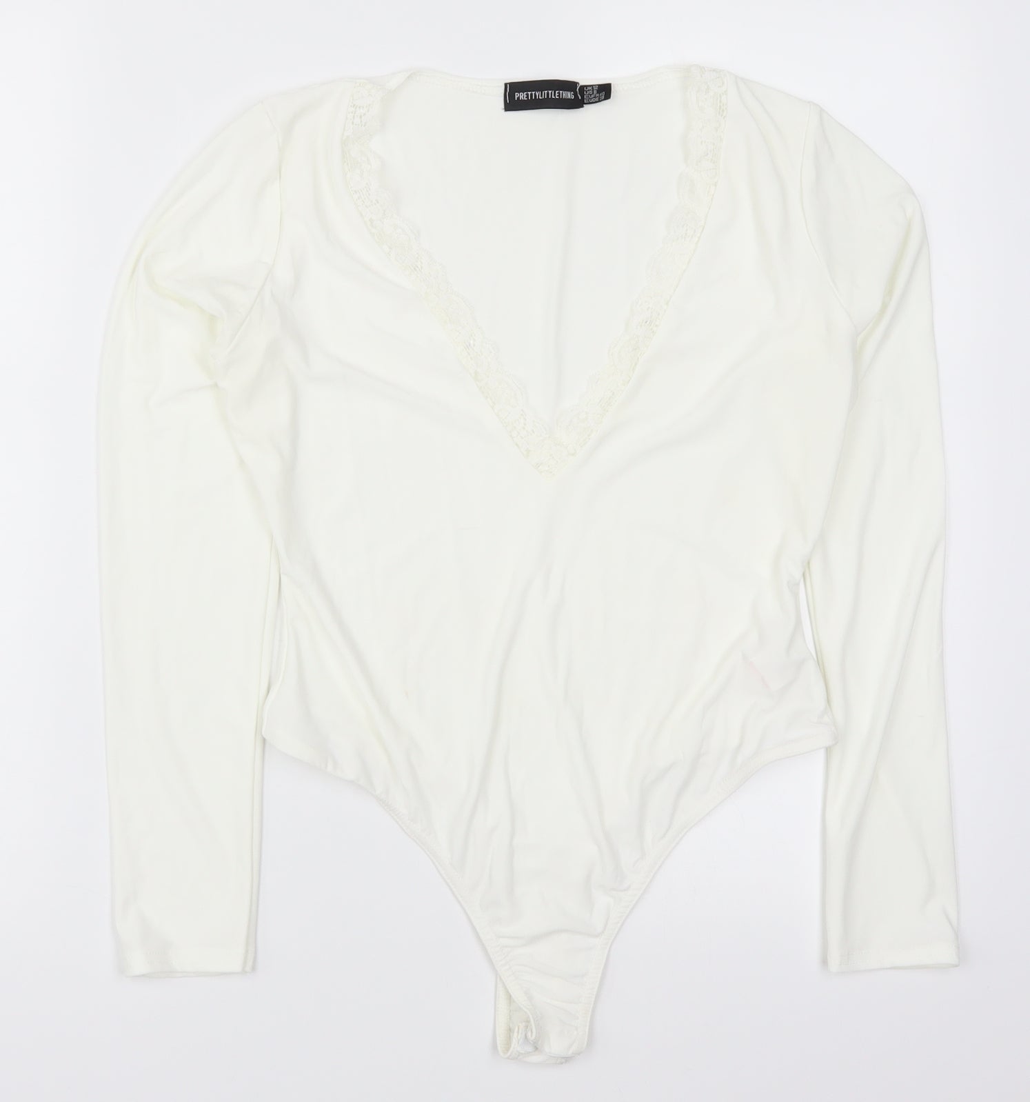 PRETTYLITTLETHING Womens White Bodysuit One-Piece Size 12