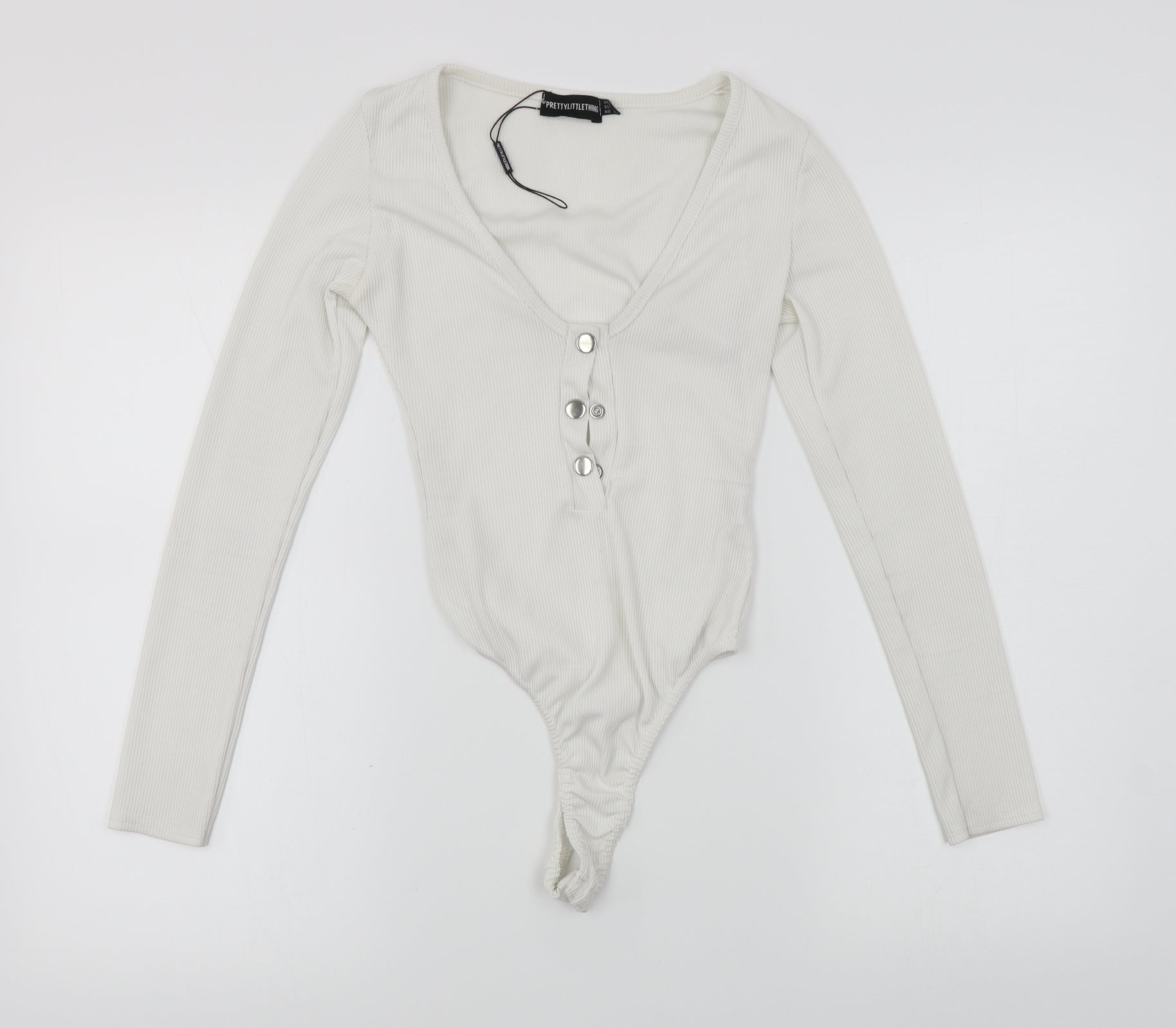 PRETTYLITTLETHING Womens White Bodysuit One-Piece Size 4