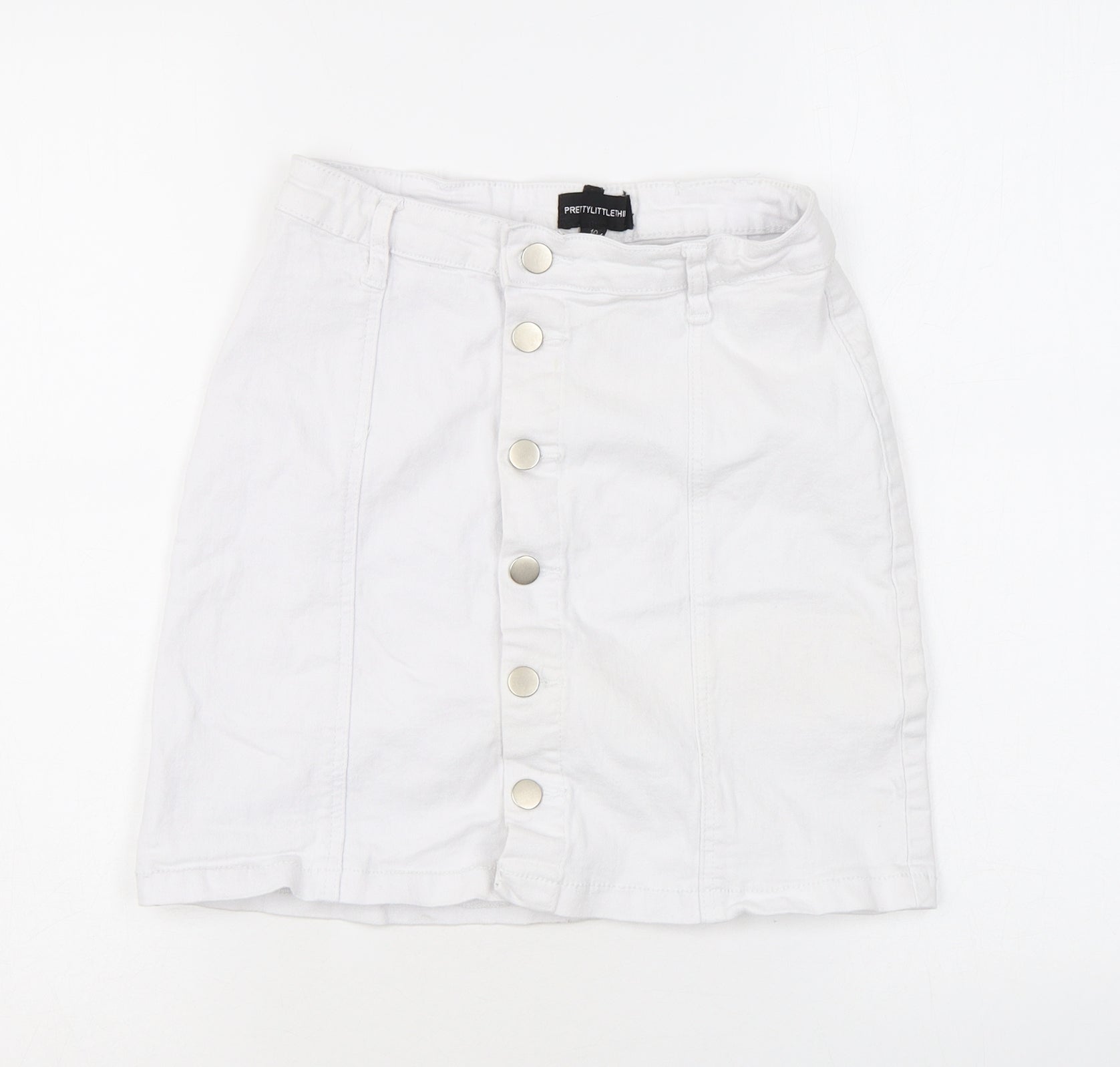 PRETTYLITTLETHING Womens White Cotton A-Line Skirt Size 10 Button