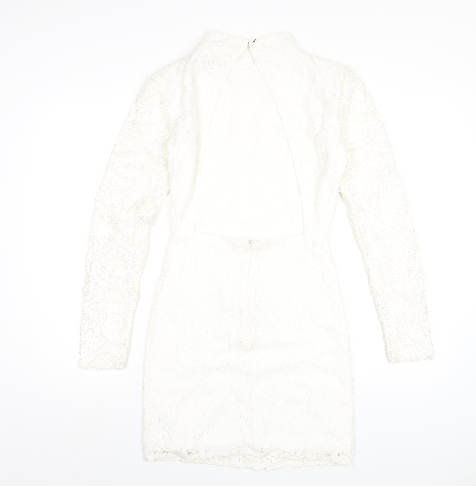 PRETTYLITTLETHING Womens White Cotton Bodycon Size 8 Mock Neck Zip