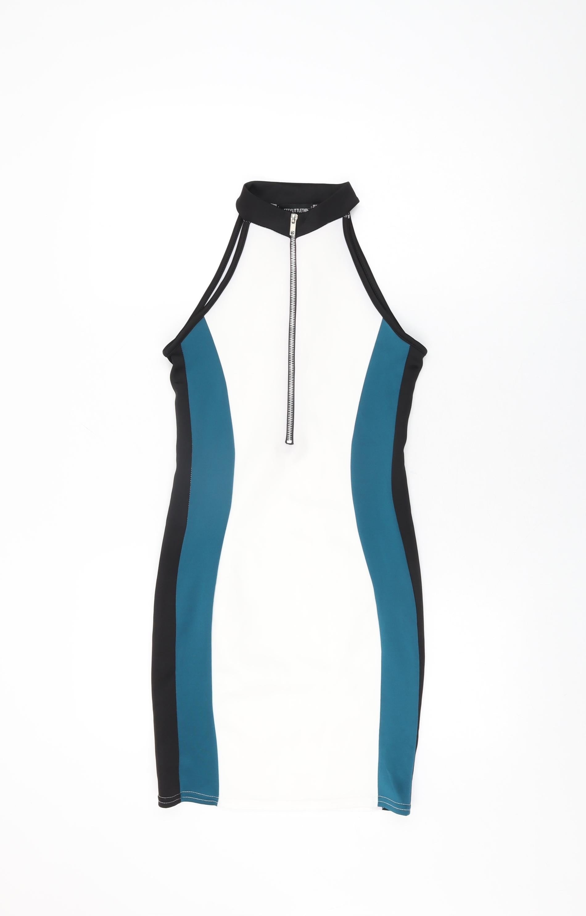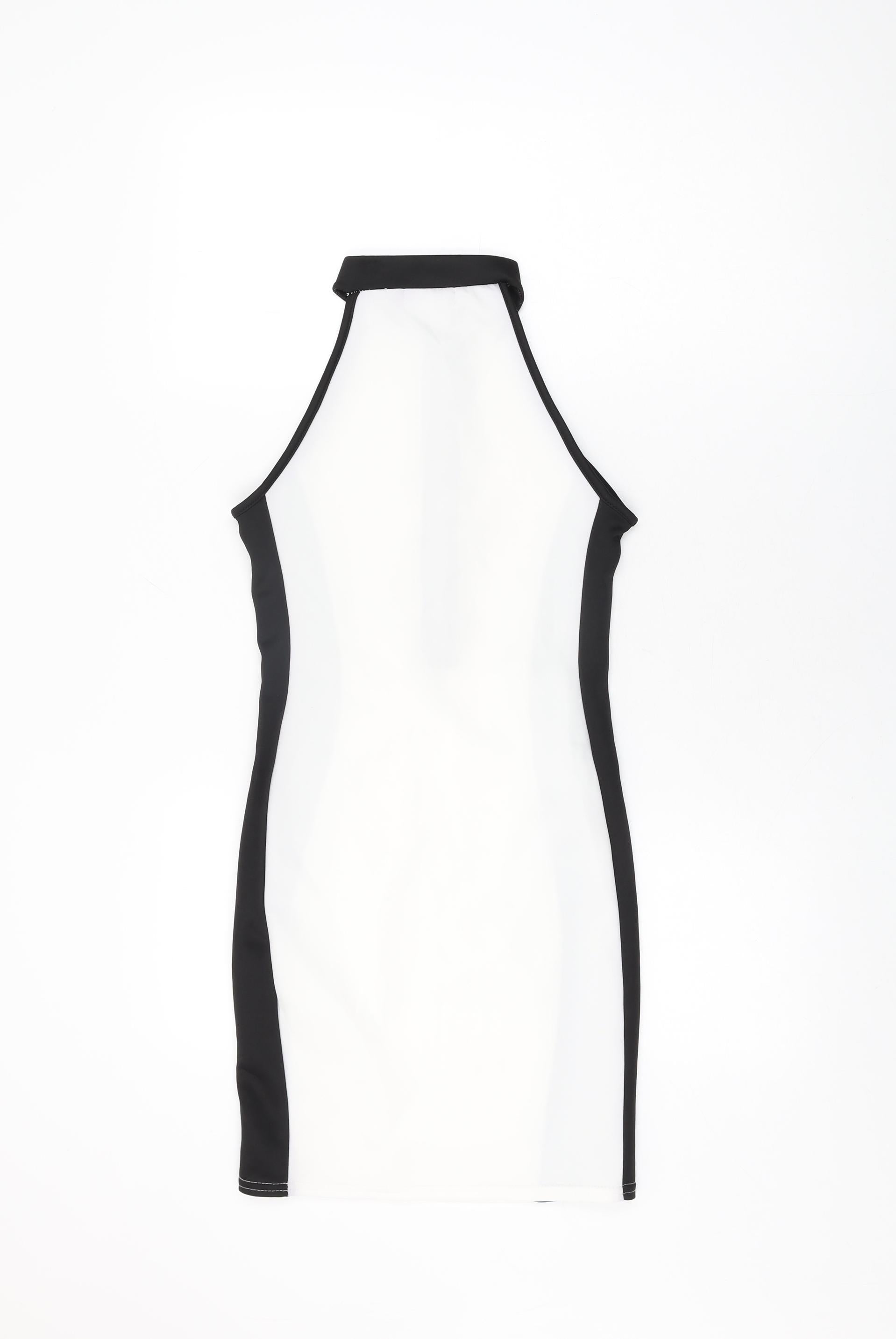 PRETTYLITTLETHING Womens White Geometric Polyester Bodycon Size 6 Round Neck Zip
