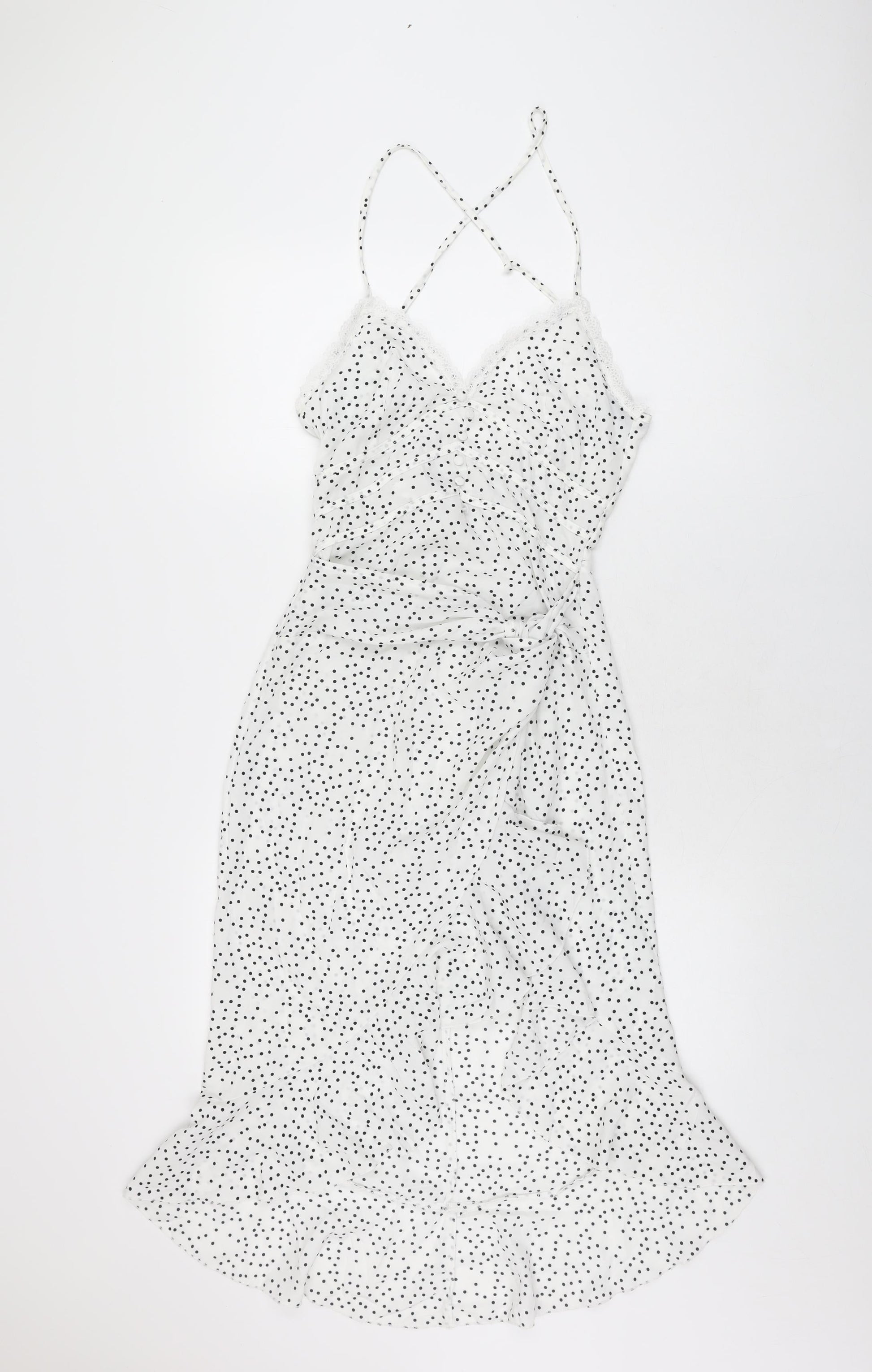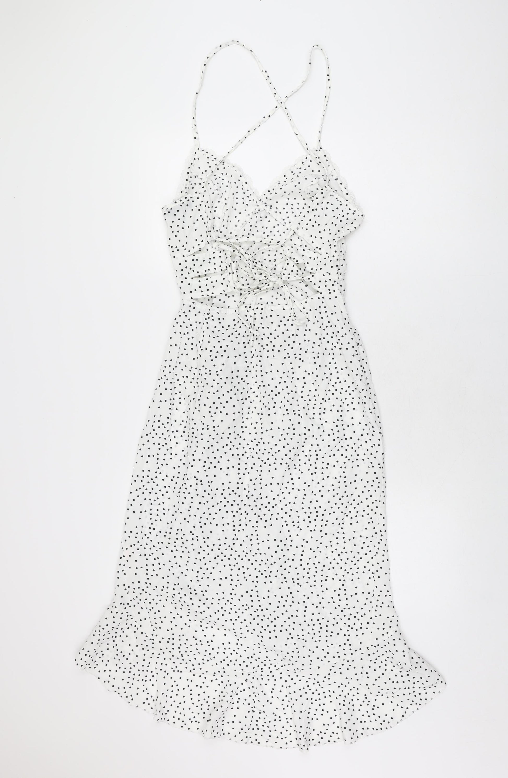 PRETTYLITTLETHING Womens White Polka Dot Polyester A-Line Size 8 V-Neck Zip