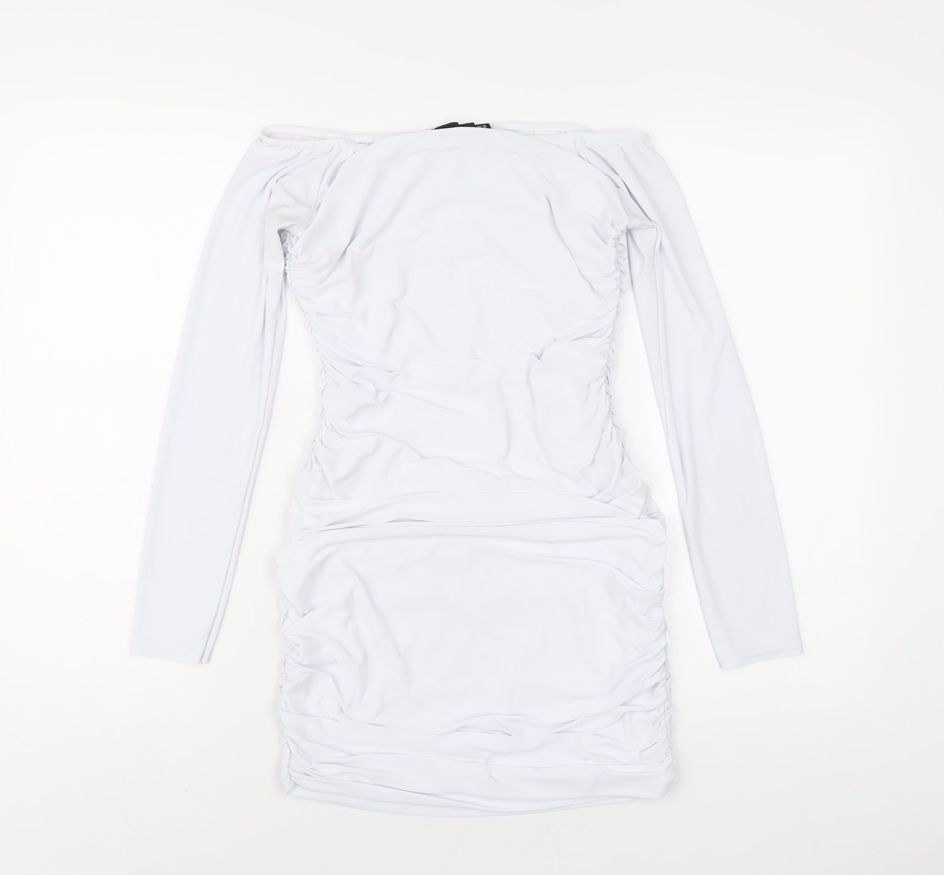 PRETTYLITTLETHING Womens White Polyester Bodycon Size 10 Off the Shoulder Pullover