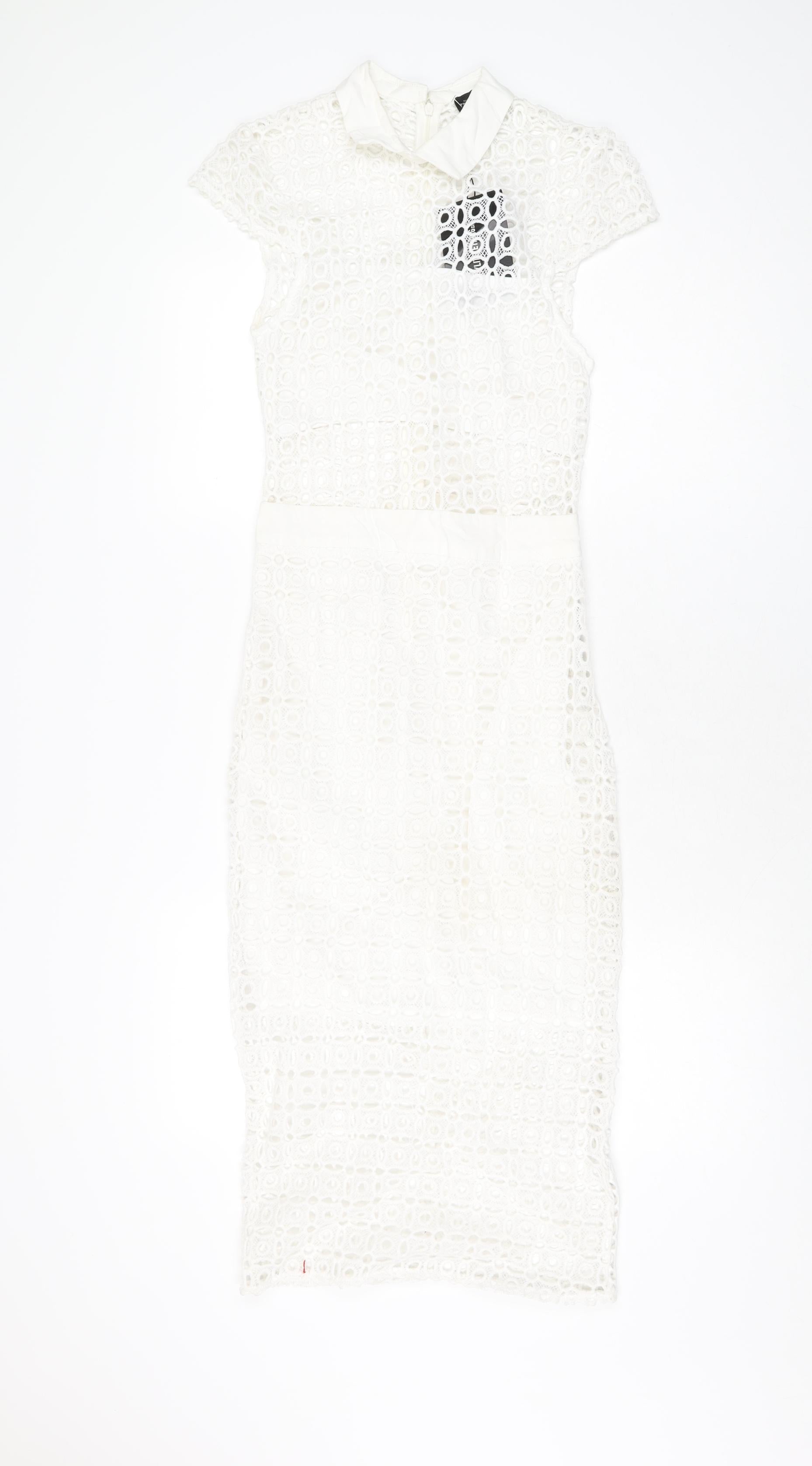 PRETTYLITTLETHING Womens White Polyester Bodycon Size 6 Collared Zip