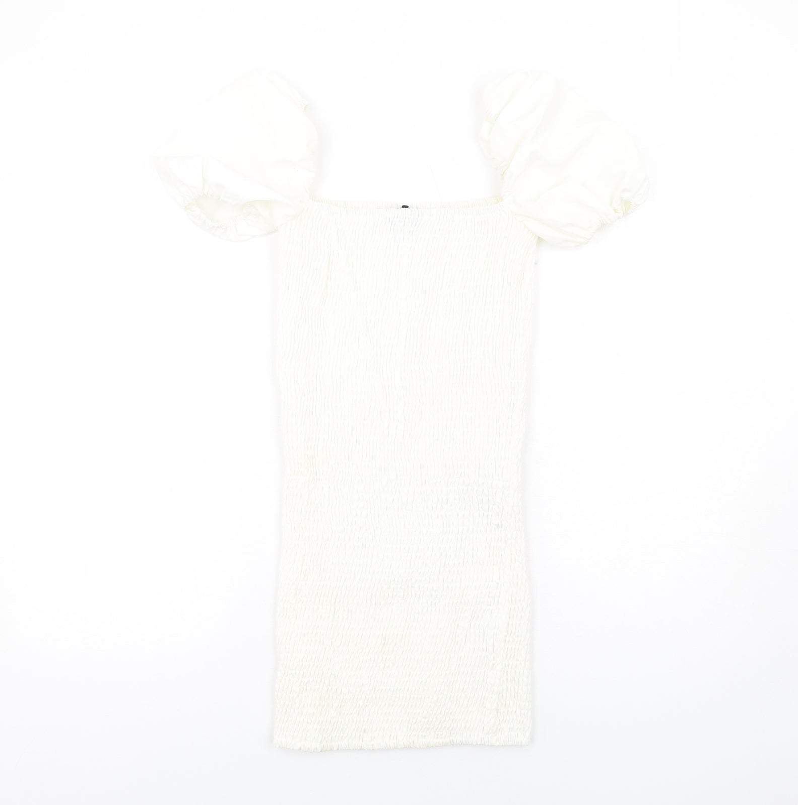 PRETTYLITTLETHING Womens White Polyester Bodycon Size 6 Square Neck Pullover