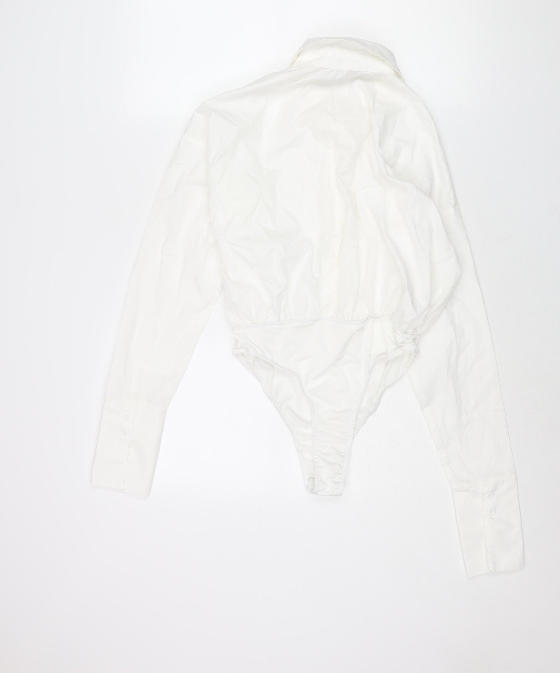 PRETTYLITTLETHING Womens White Polyester Bodysuit One-Piece Size 12 Button