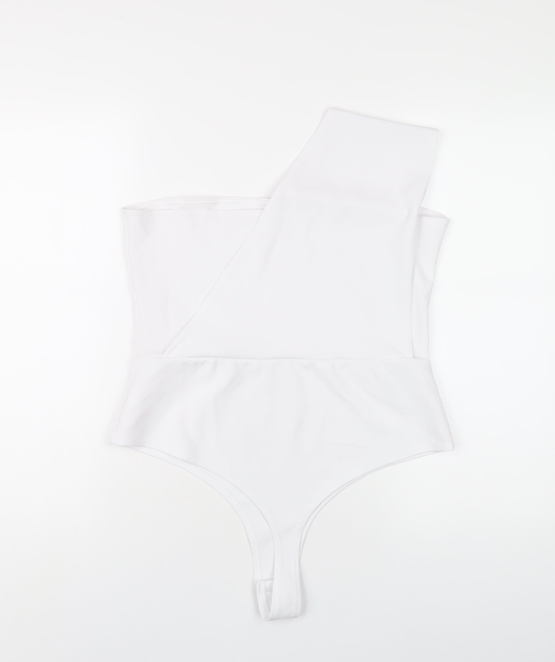 PRETTYLITTLETHING Womens White Polyester Bodysuit One-Piece Size 16 Snap