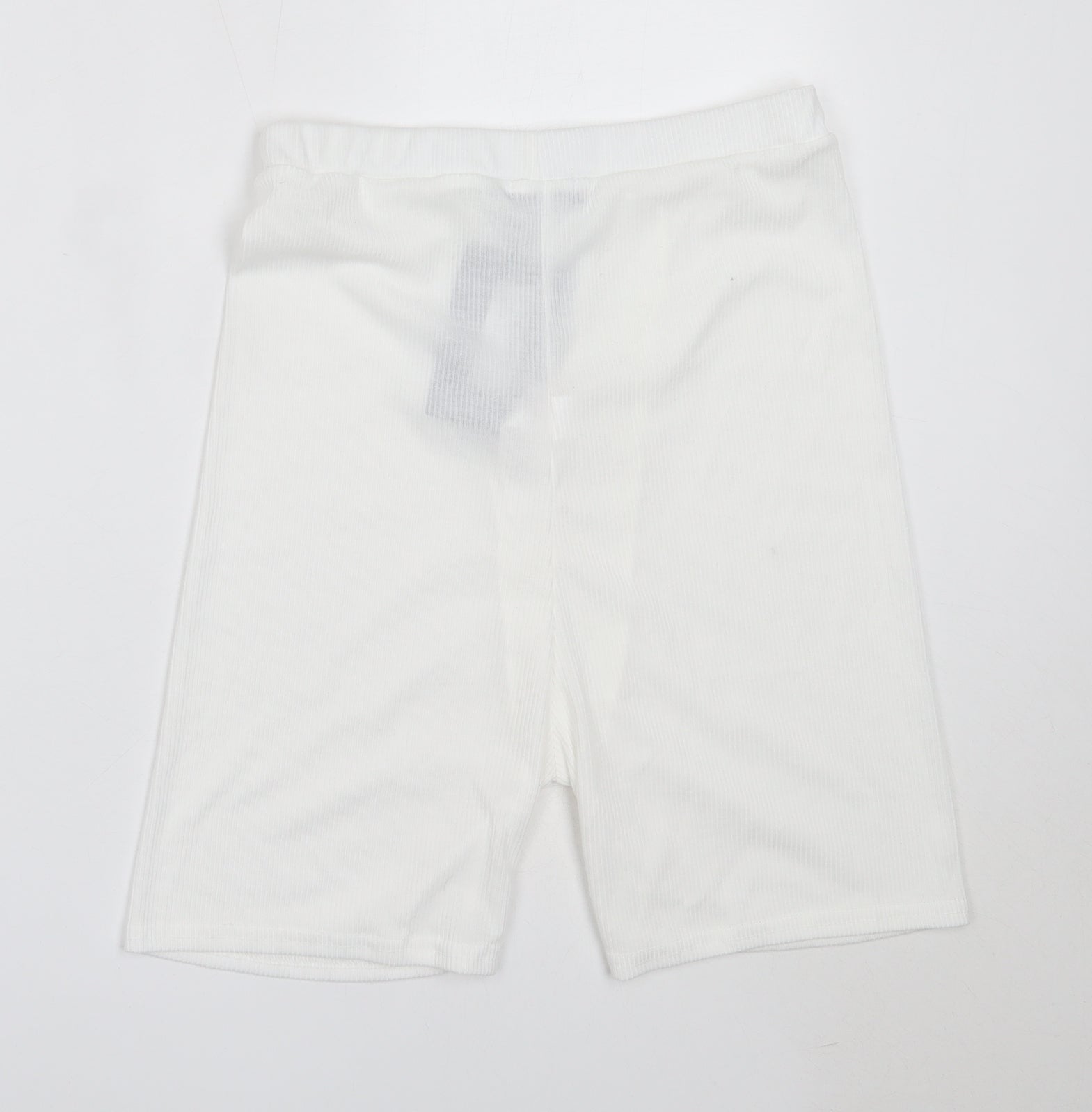 PRETTYLITTLETHING Womens White Polyester Compression Shorts Size 14 Regular