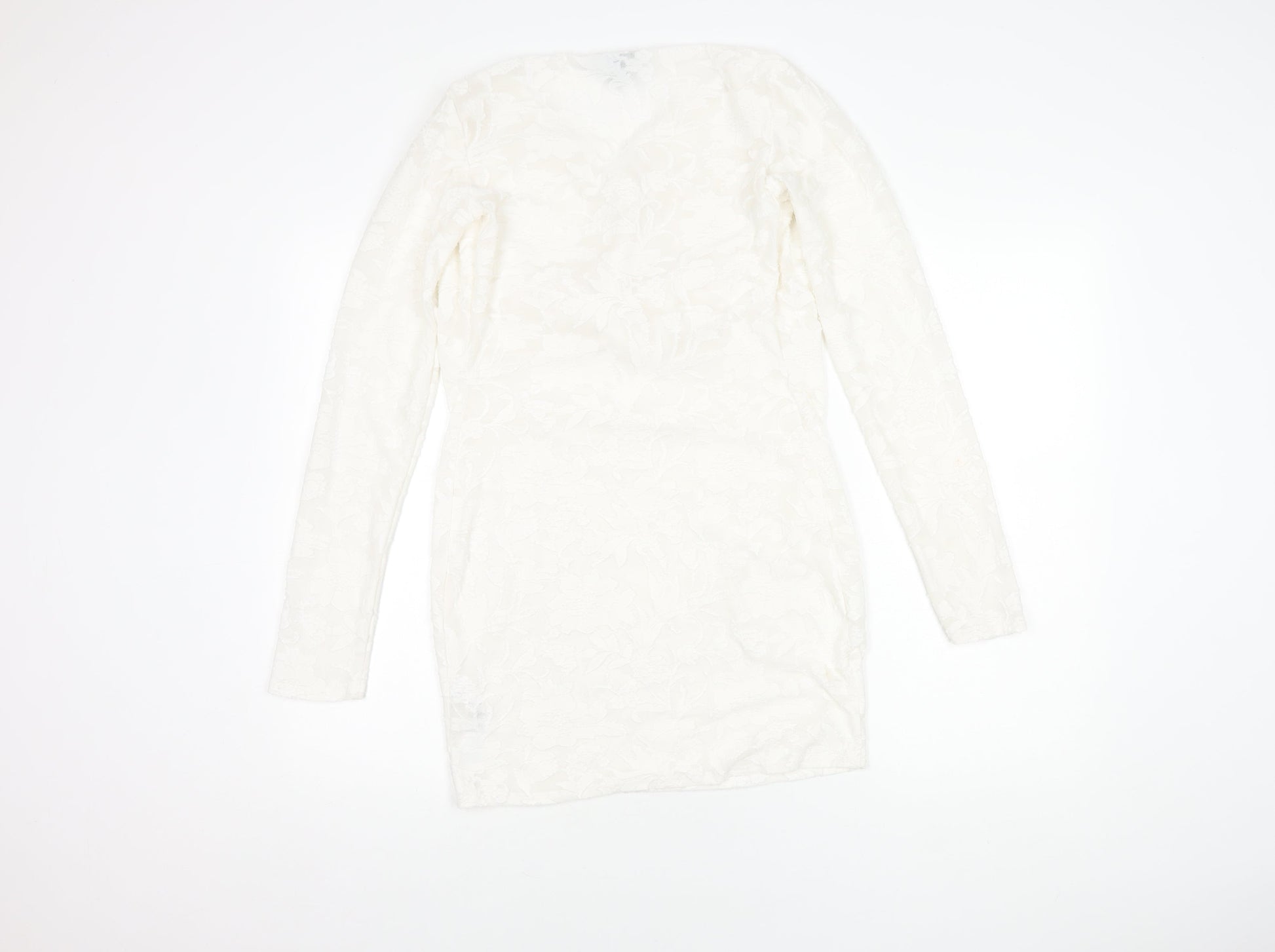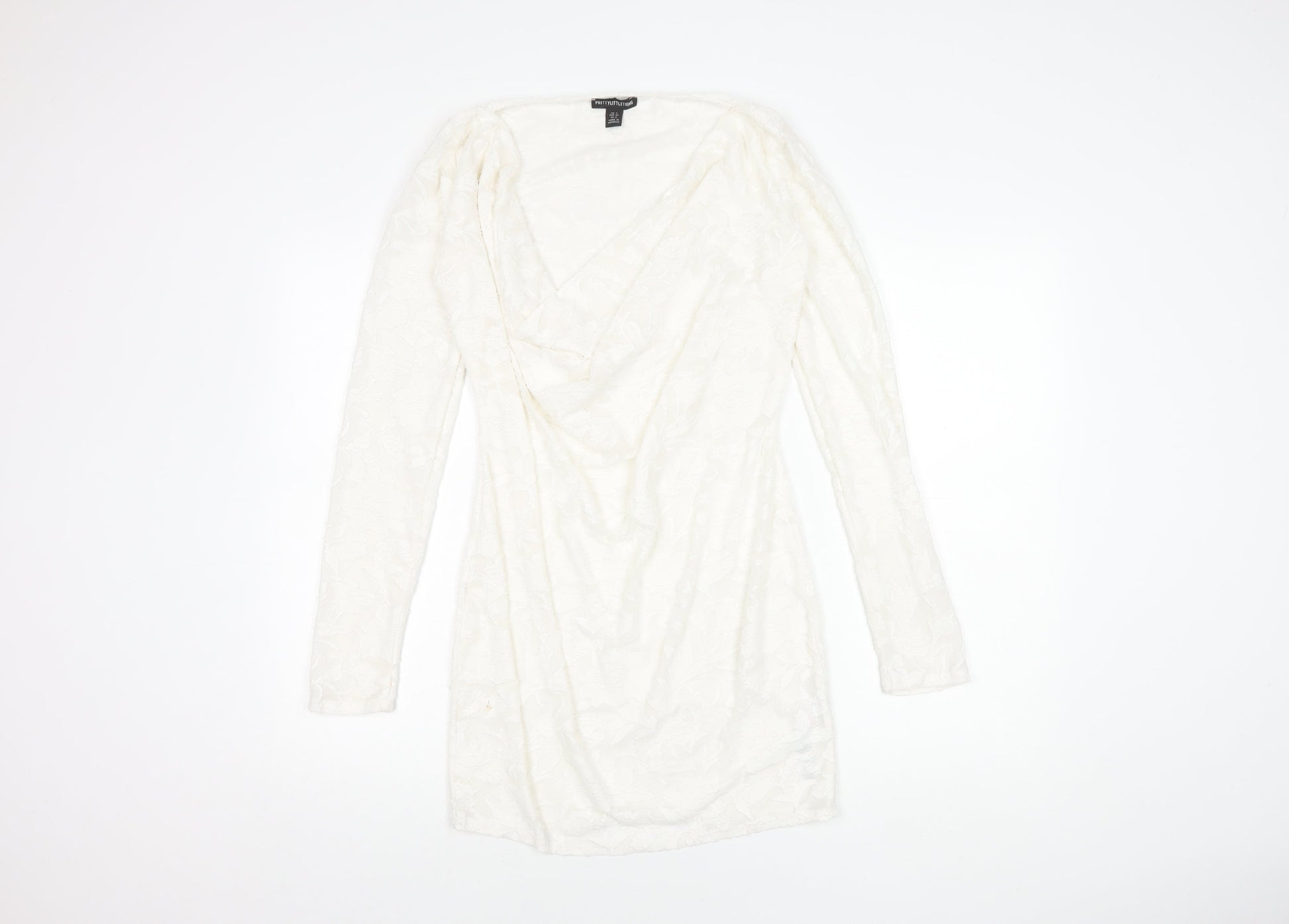 PrettyLittleThing Women's White Size 4 Short Cowl Neck Dress