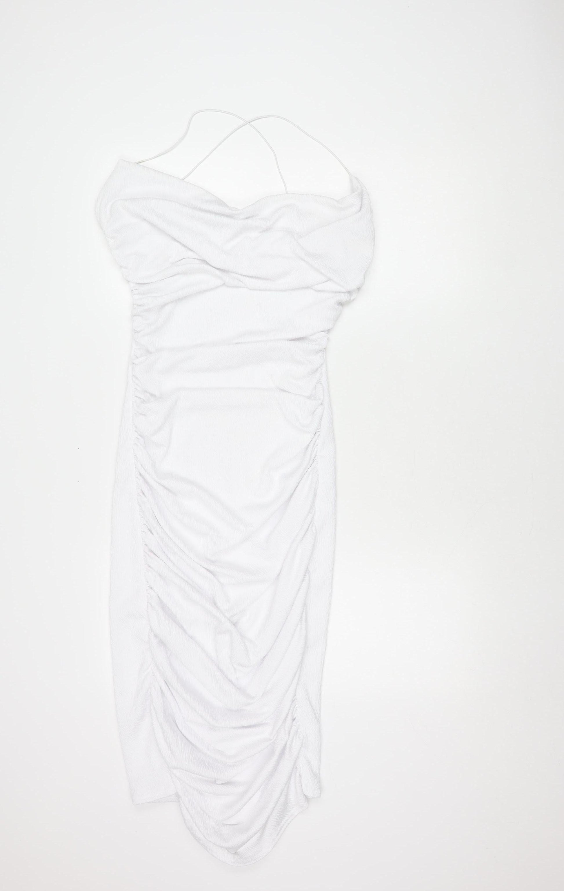 PrettyLittleThing Women's White Strappy Dress, Size 12, Elegant