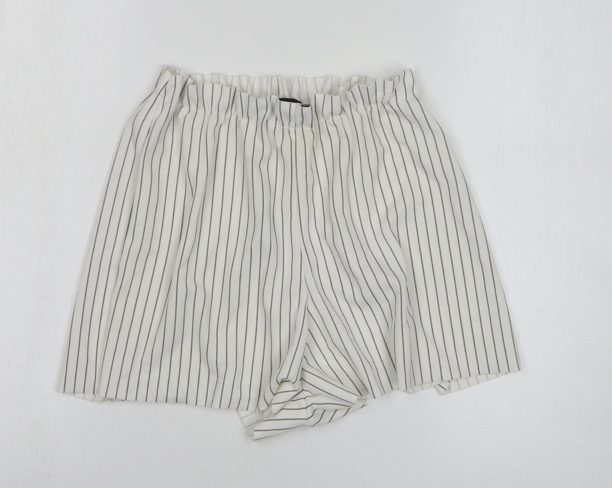 PRETTYLITTLETHING Womens White Striped Polyester Hot Pants Shorts Size 10 L3 in Regular