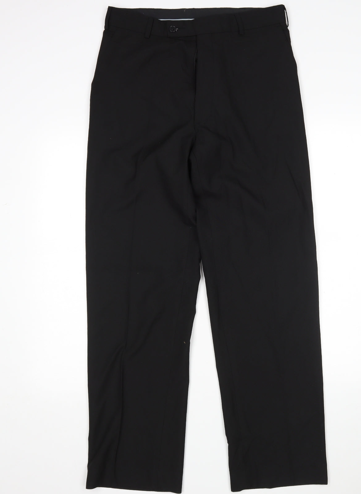 Preworn Mens Black Polyester Trousers Size 32 L30 in Regular