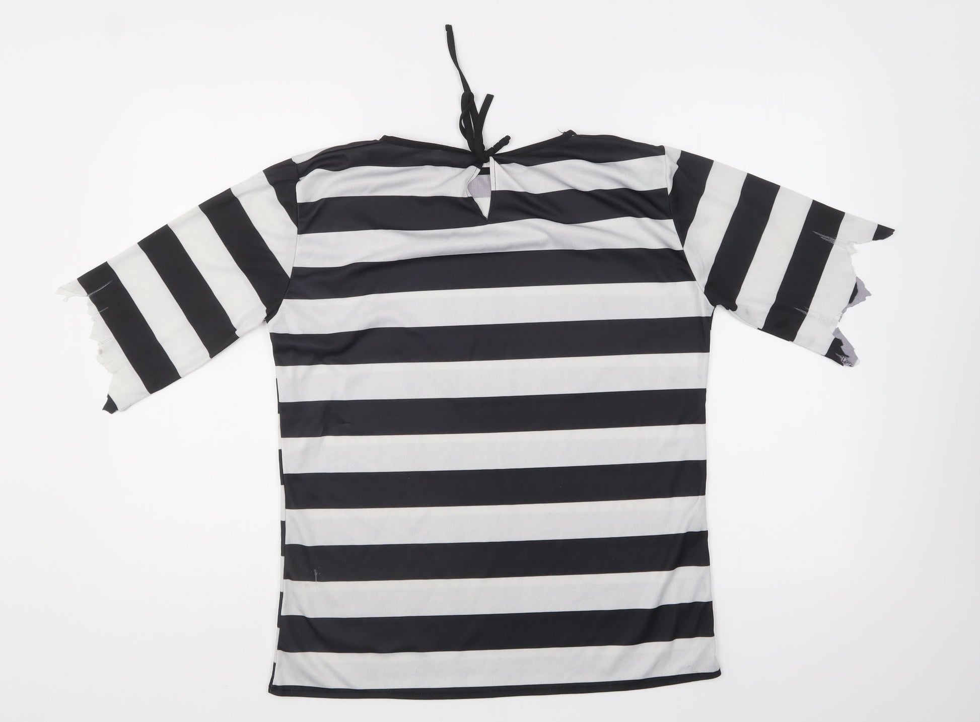 Preworn Mens Black Striped Polyester T-Shirt One Size Round Neck - Thief Fancy Dress
