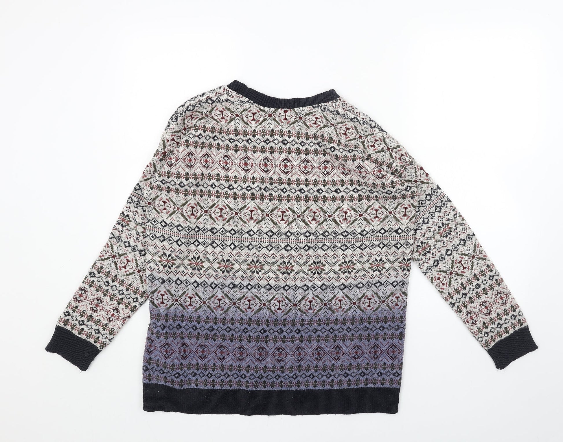 Preworn Mens Blue Round Neck Fair Isle Acrylic Pullover Jumper Size XS Long Sleeve