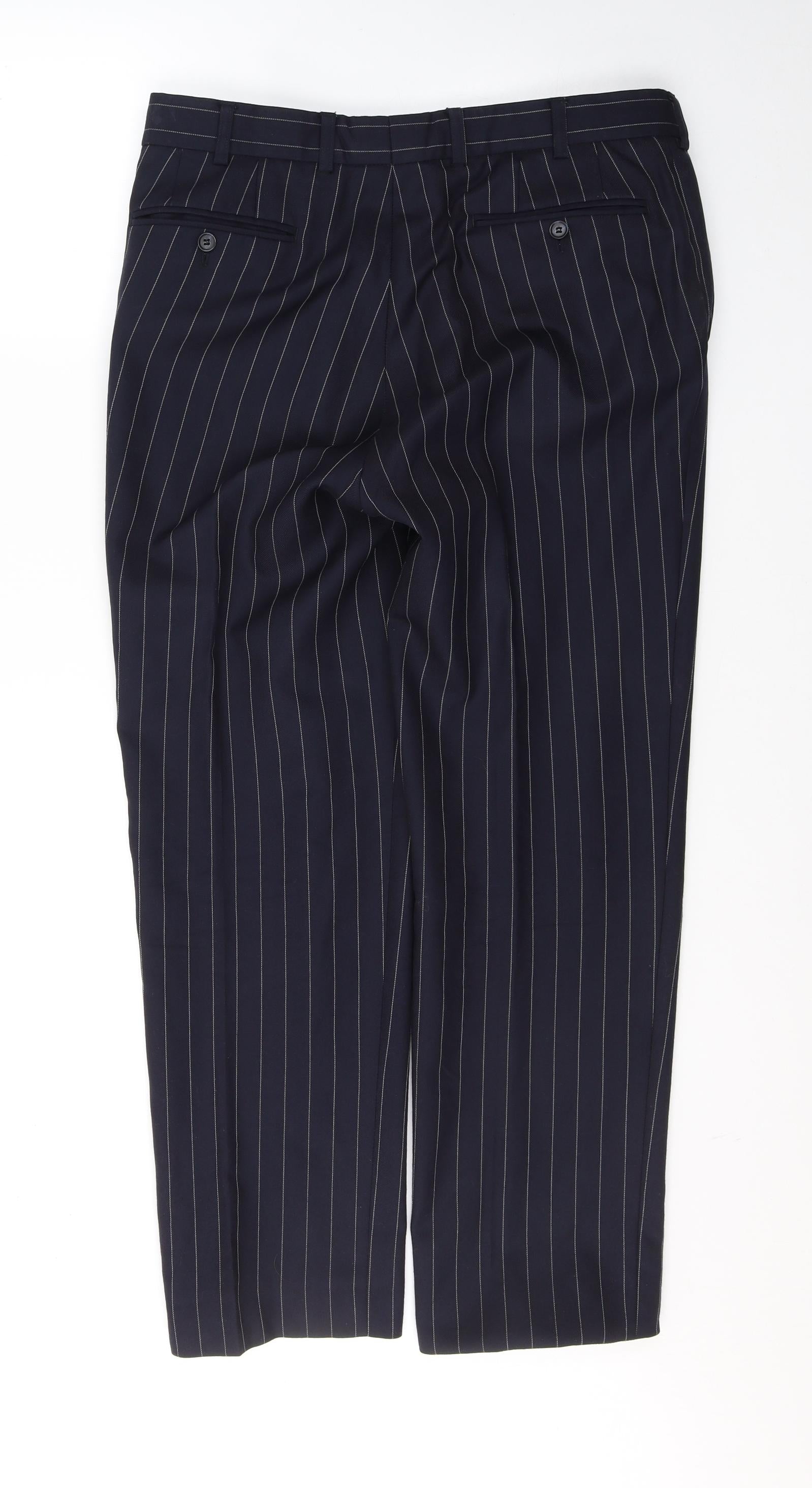 Preworn Mens Blue Striped Polyester Trousers Size 34 in L29 in Regular Button
