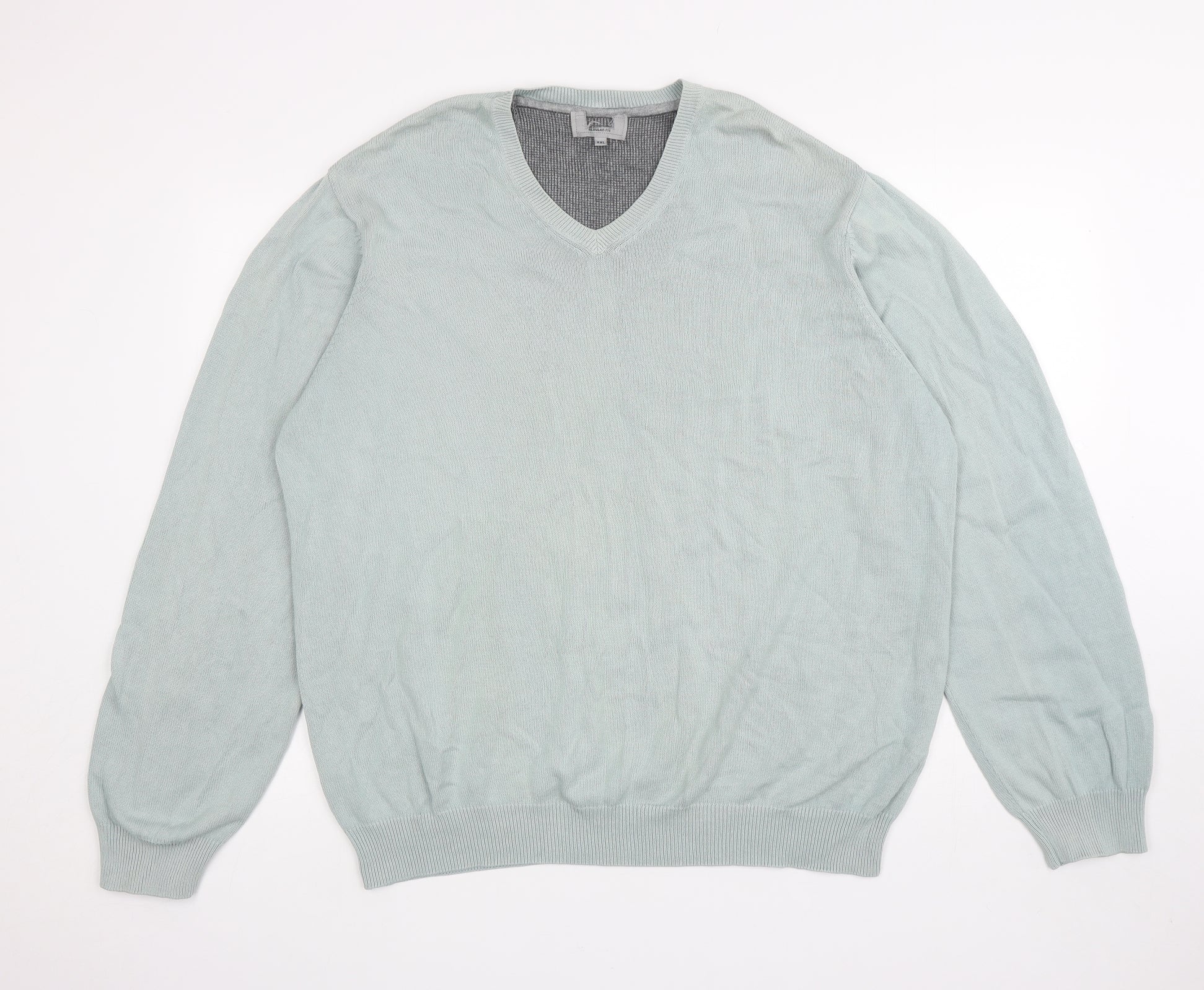 Preworn Mens Blue V-Neck Cotton Pullover Jumper Size 2XL