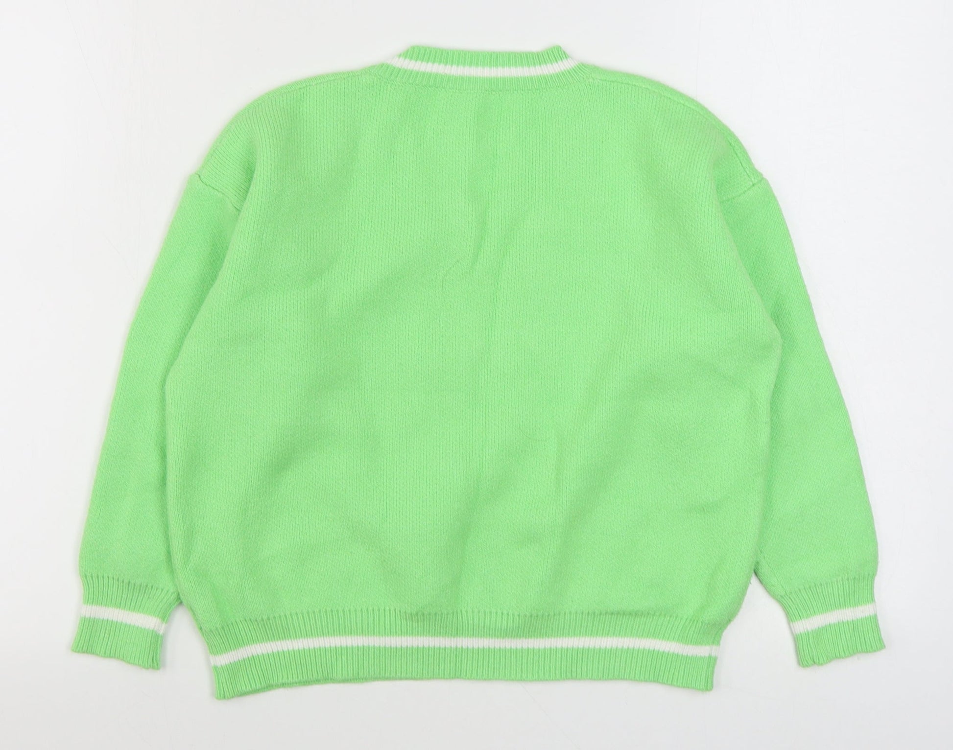 Preworn Mens Green V-Neck Polyester Pullover Jumper Size S