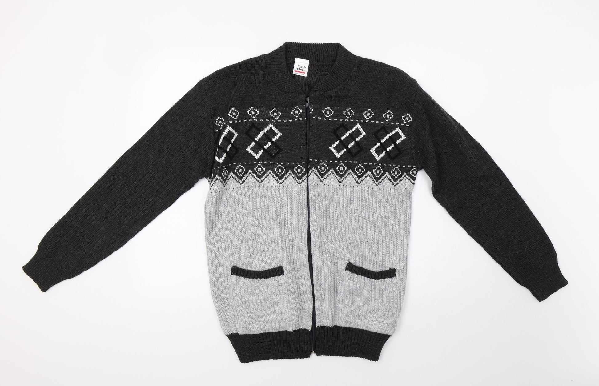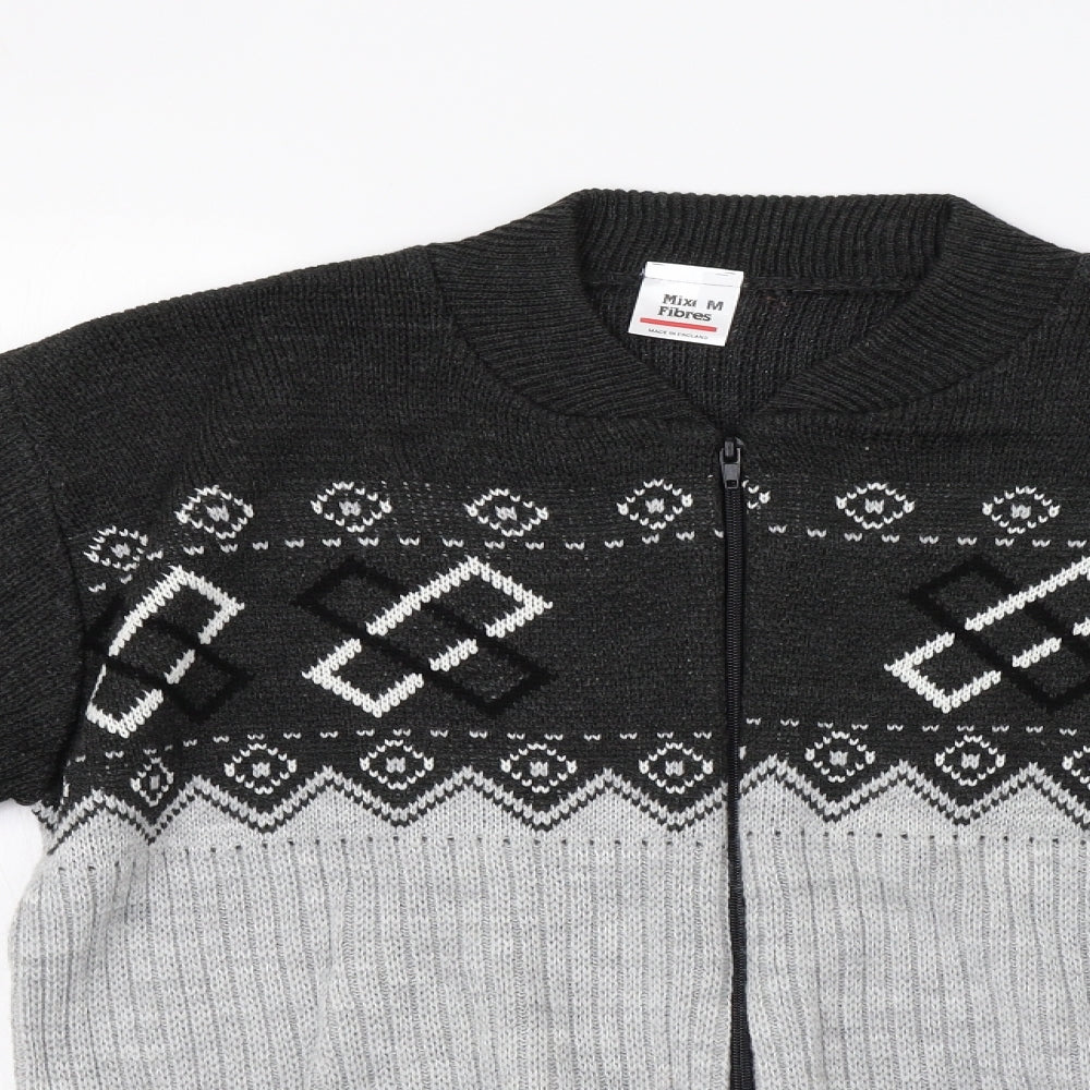 Preworn Mens Grey Geometric Full Zip Jumper Size M