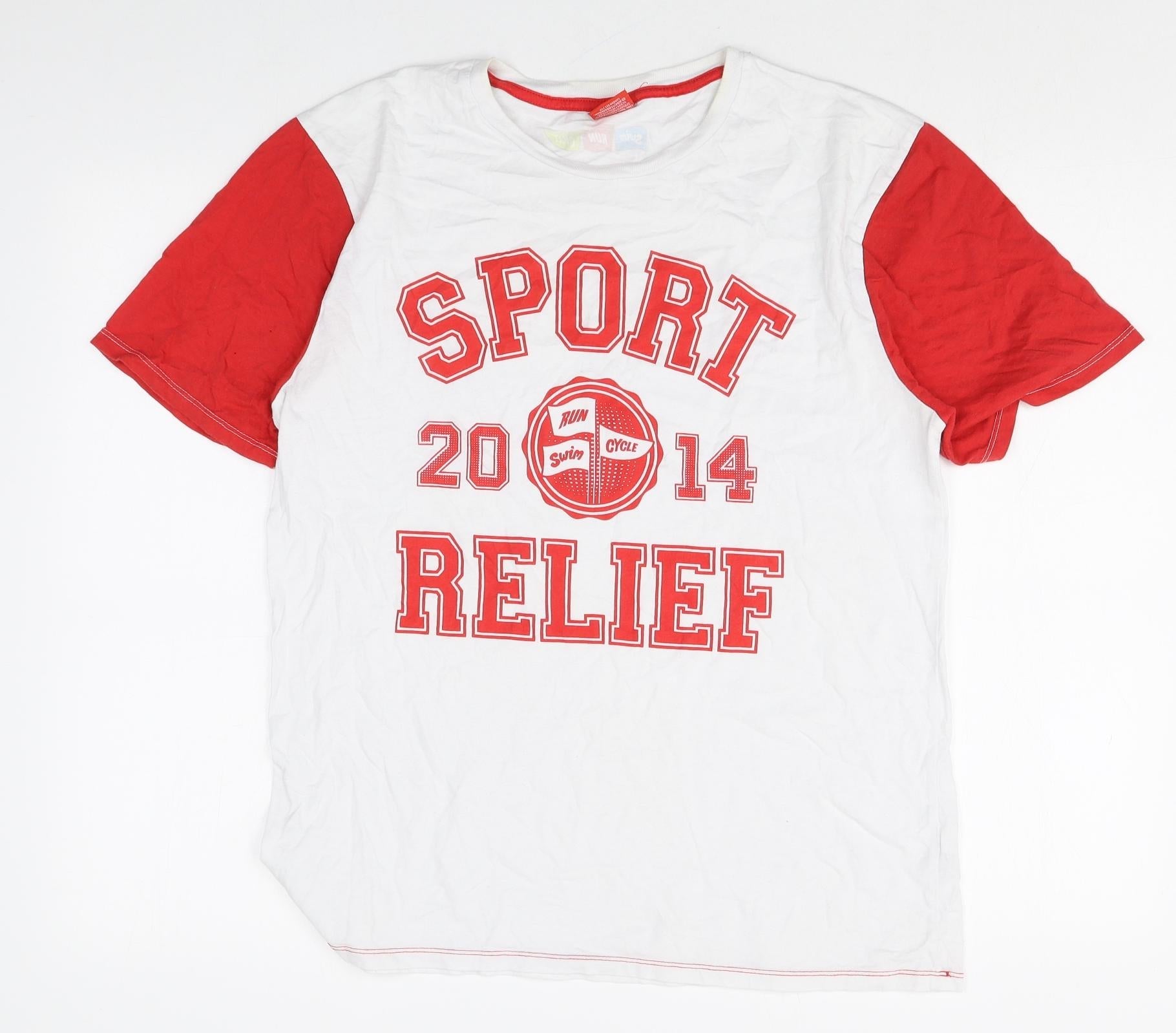 Preworn Mens Multicoloured Cotton T-Shirt Size M Round Neck - Sport Relief