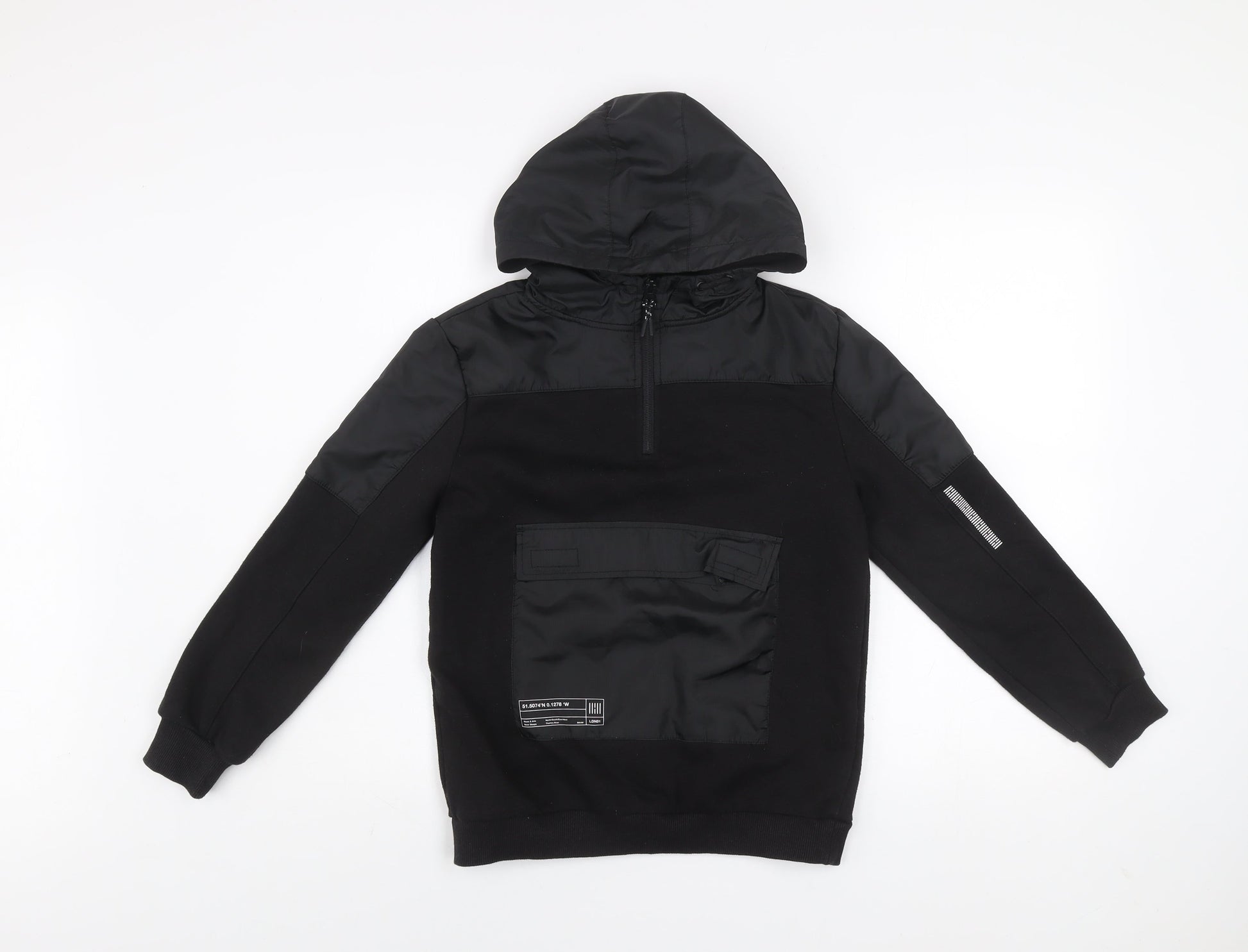 Primark Boys Black 10-11 Years Pullover Hoodie with Zip Pocket