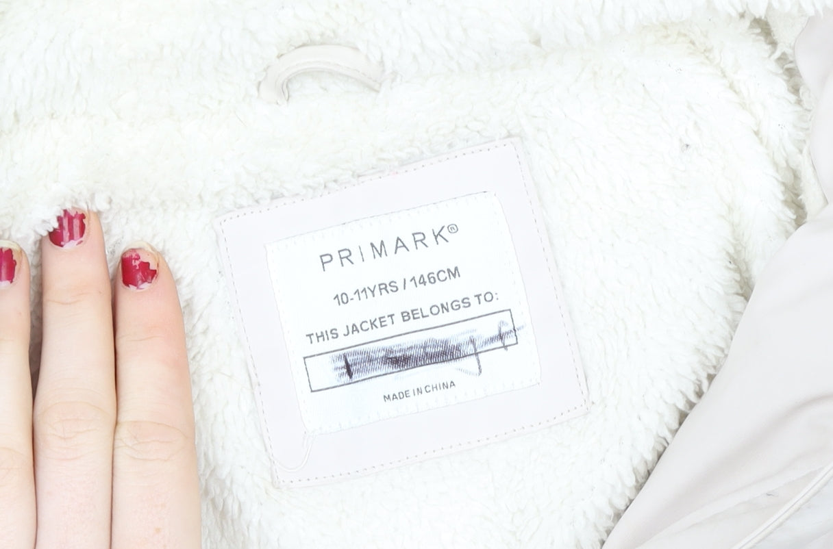 Primark Girls Beige Hooded Parka Coat 10-11 Years Lined Full Zip Pockets