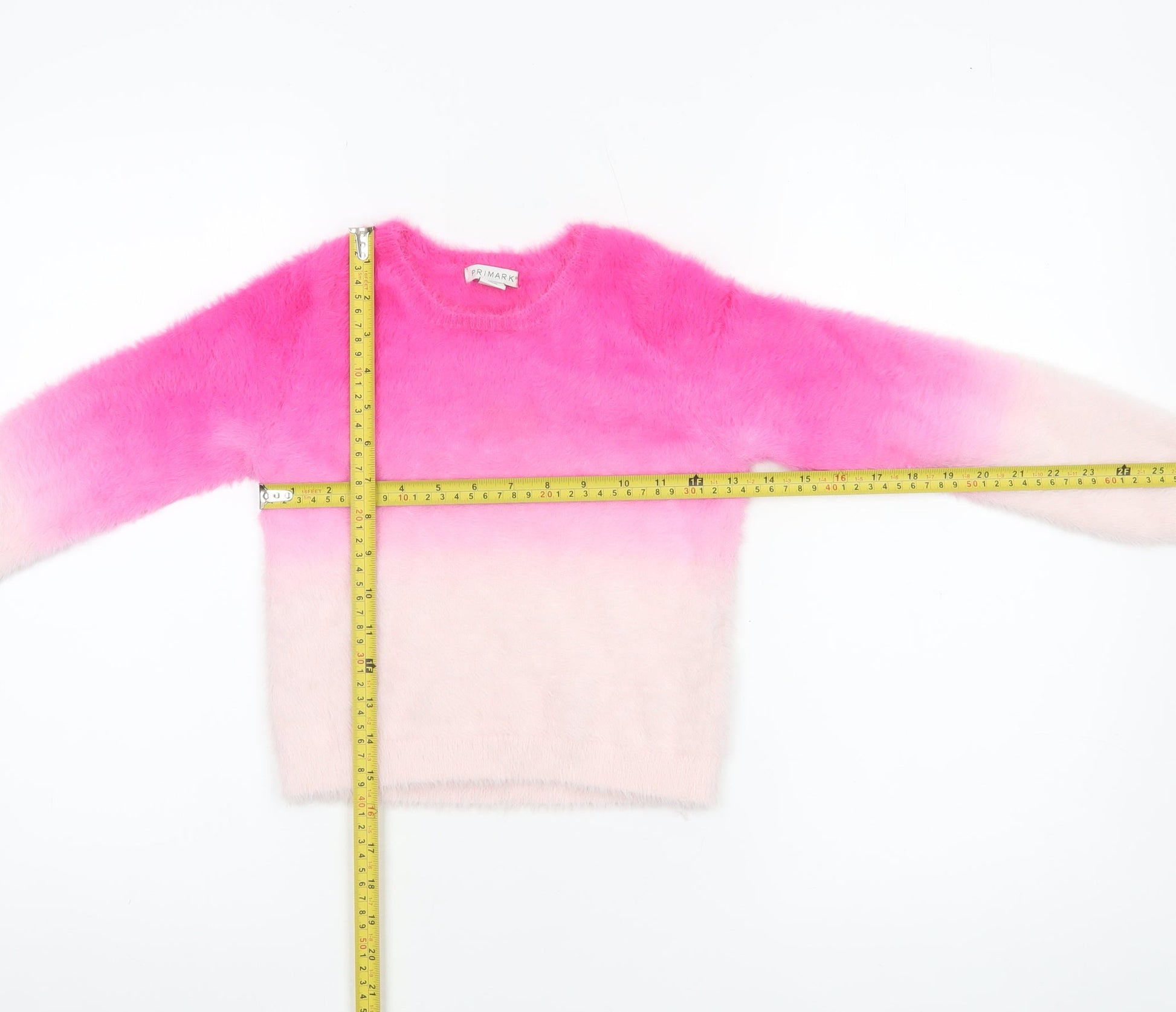 Primark Girls Pink Ombre Fuzzy Pullover Jumper 7-8 Years Soft Crew Neck