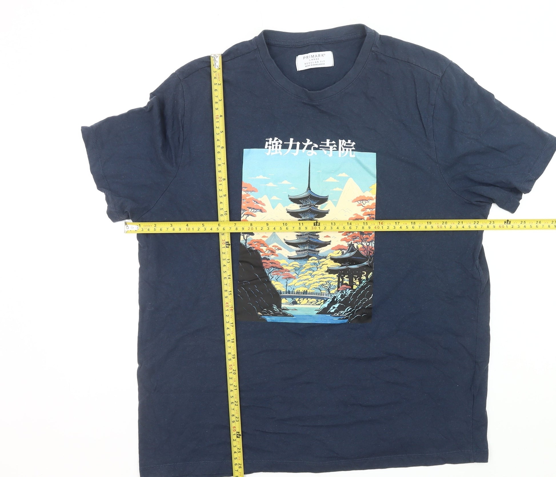 Primark Men’s Blue Large Regular Fit Japanese Graphic T-Shirt