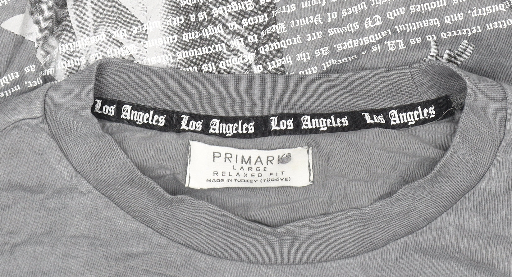 Primark Men’s Grey LA Graphic Relaxed Fit Cotton T-Shirt Size L