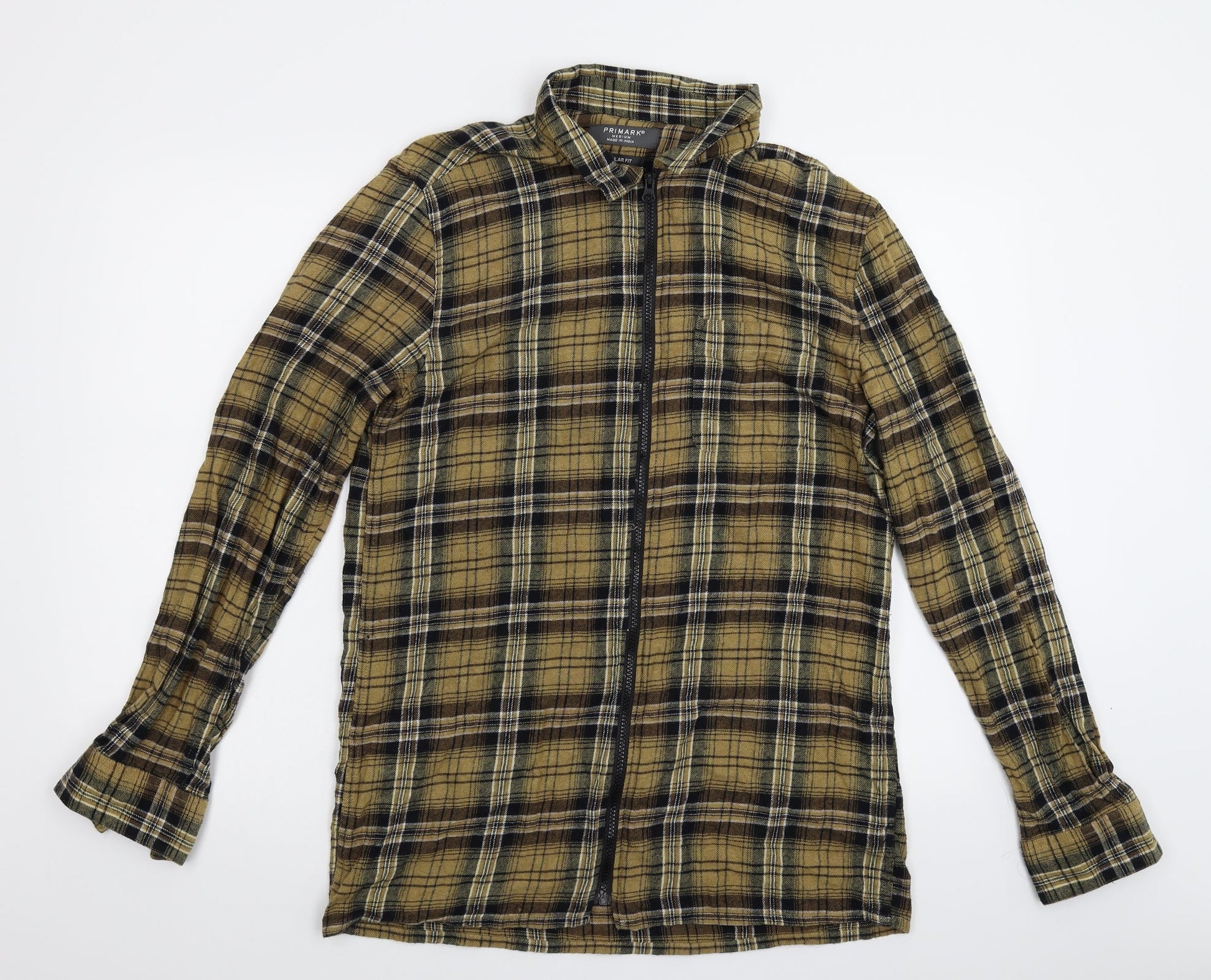 Primark Mens Beige Check Button-Up Size M