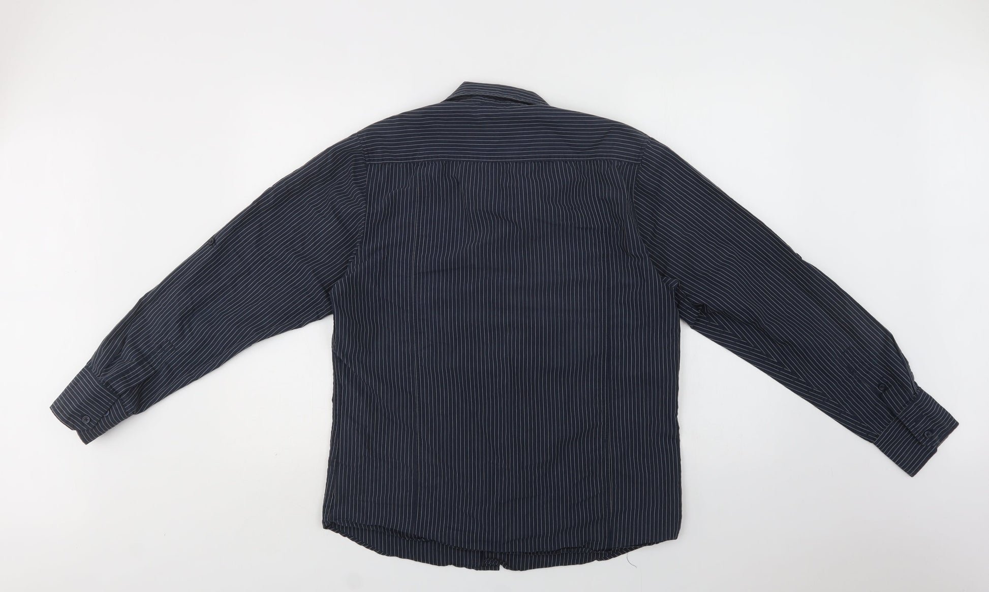 Primark Mens Beige Striped Cotton Button-Up Size L Collared Button