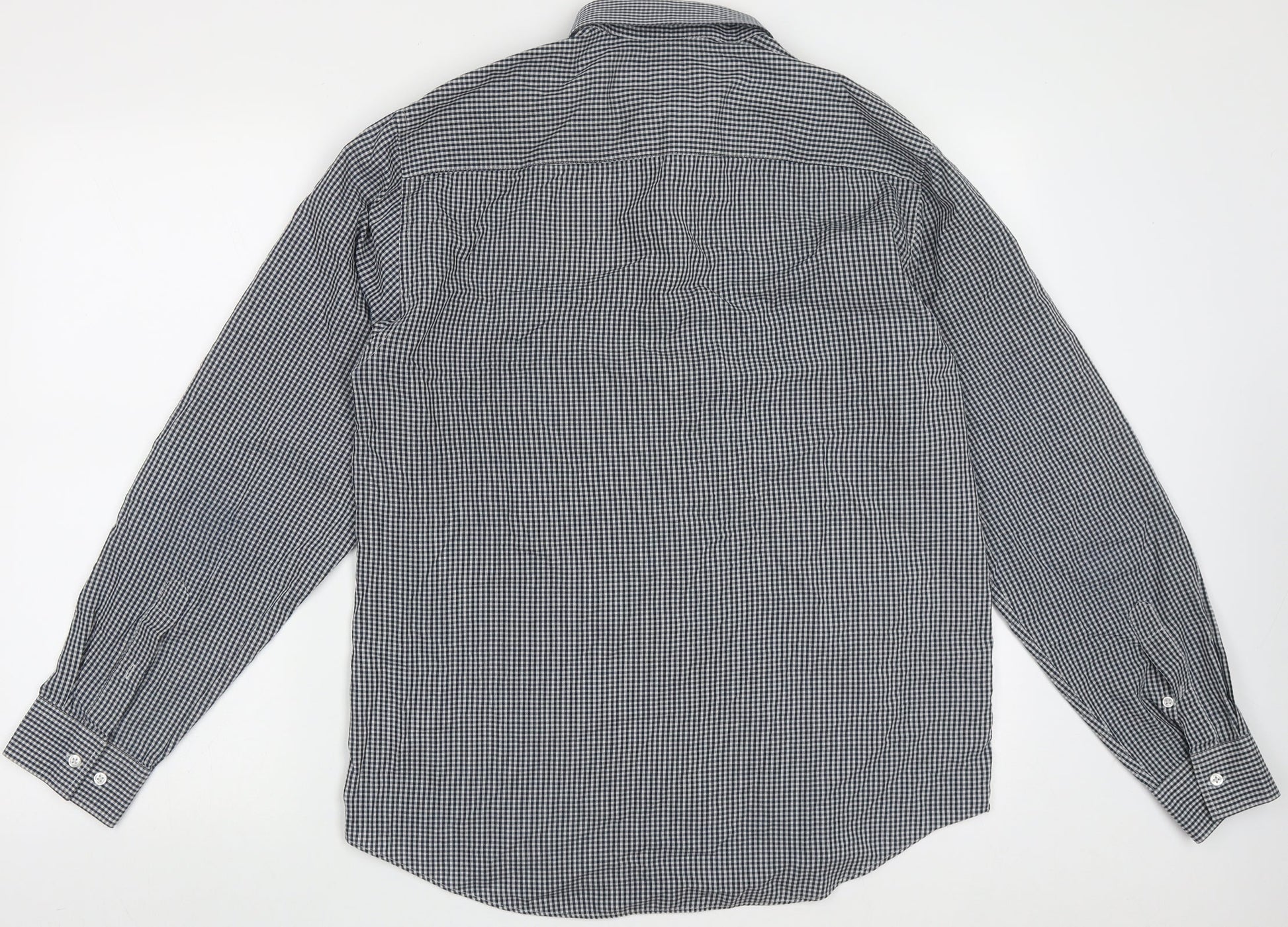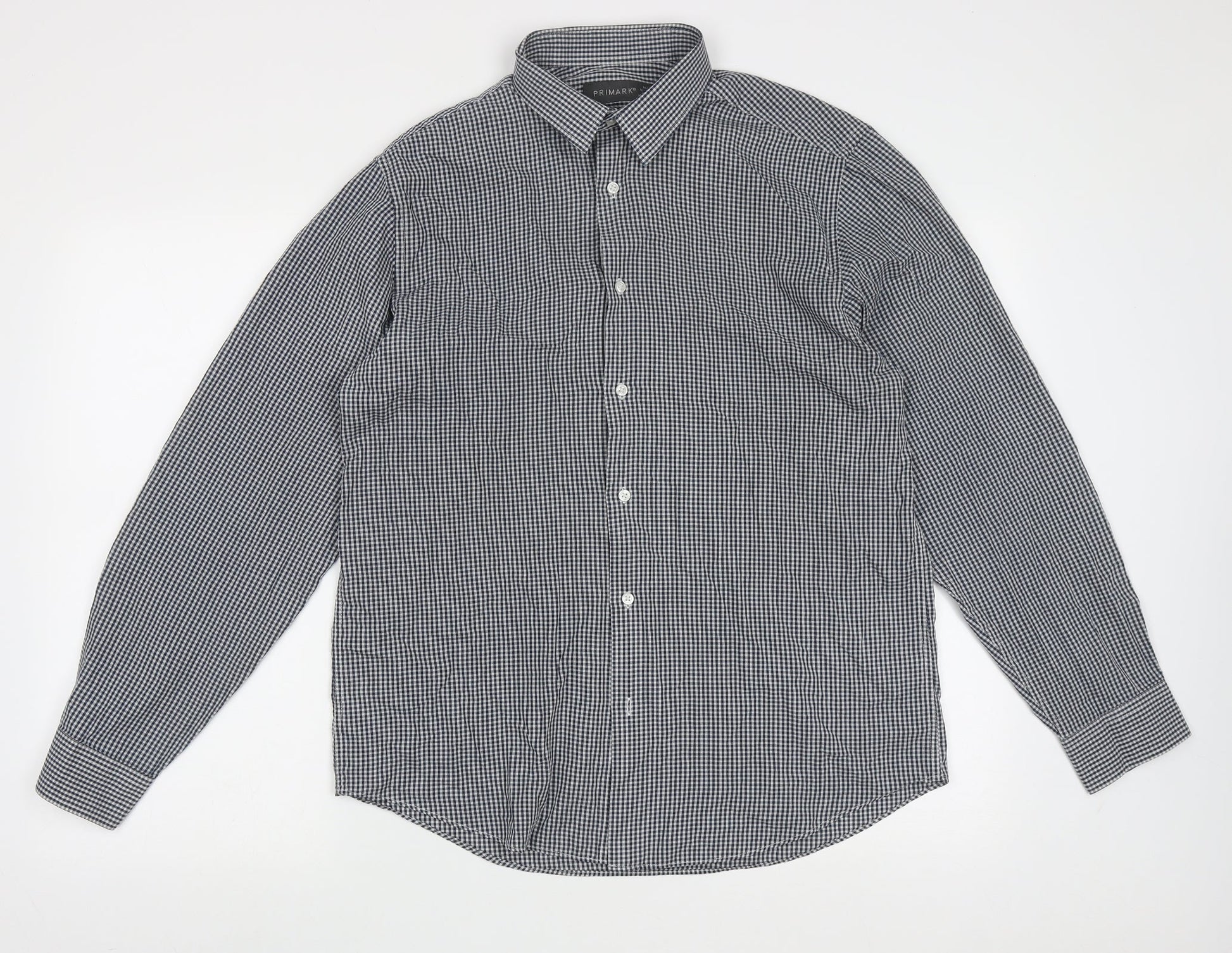 Primark Mens Blue Check Polyester Button-Up Size 16 Collared Button