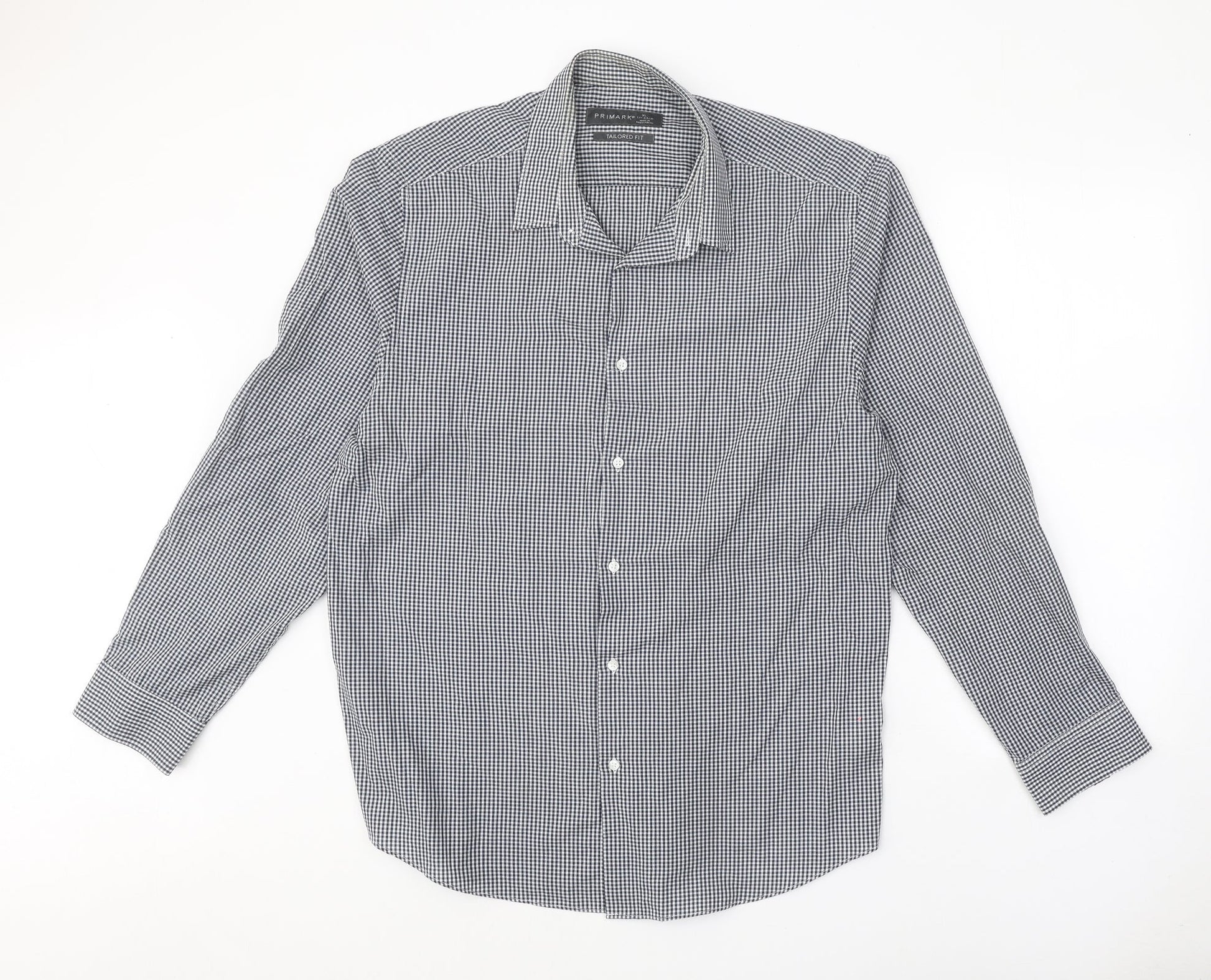 Primark Mens Blue Check Polyester Button-Up Size 17 Collared Button