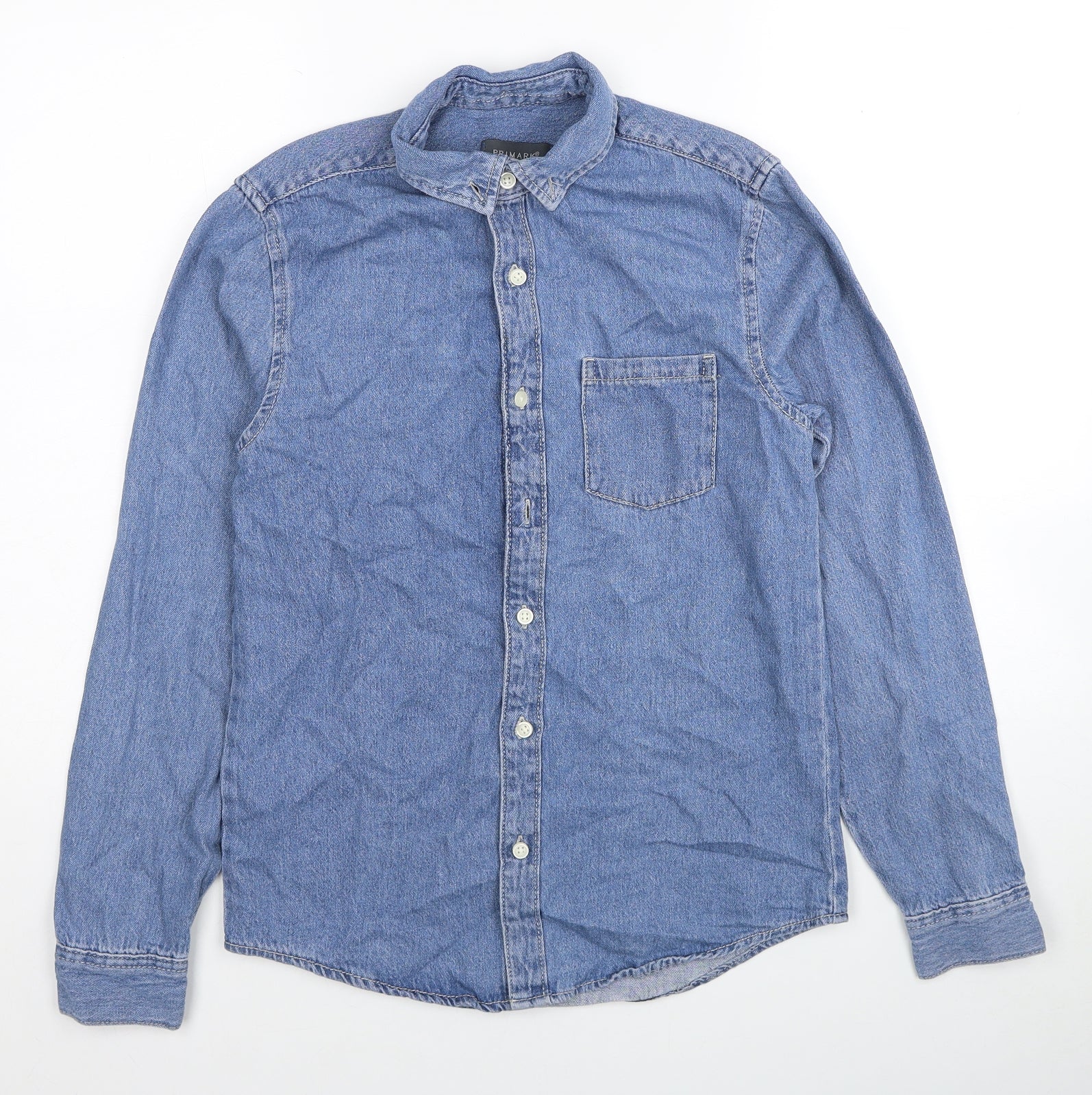 Primark Mens Blue Cotton Button-Up Size XS Collared Button