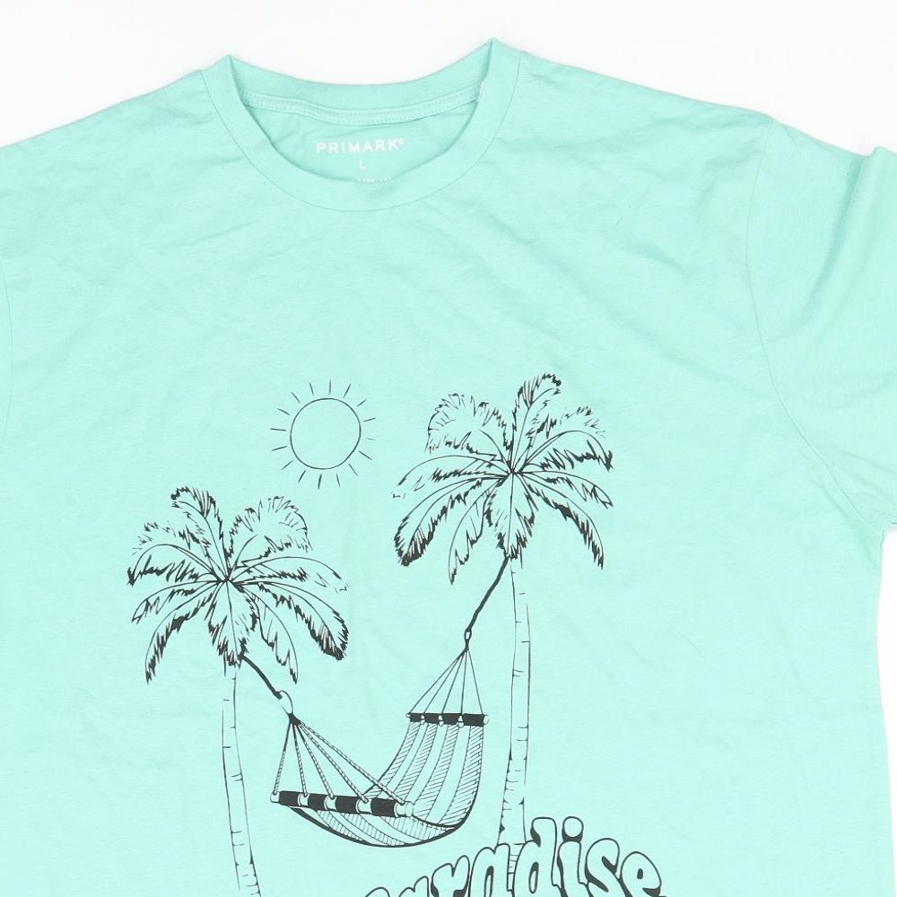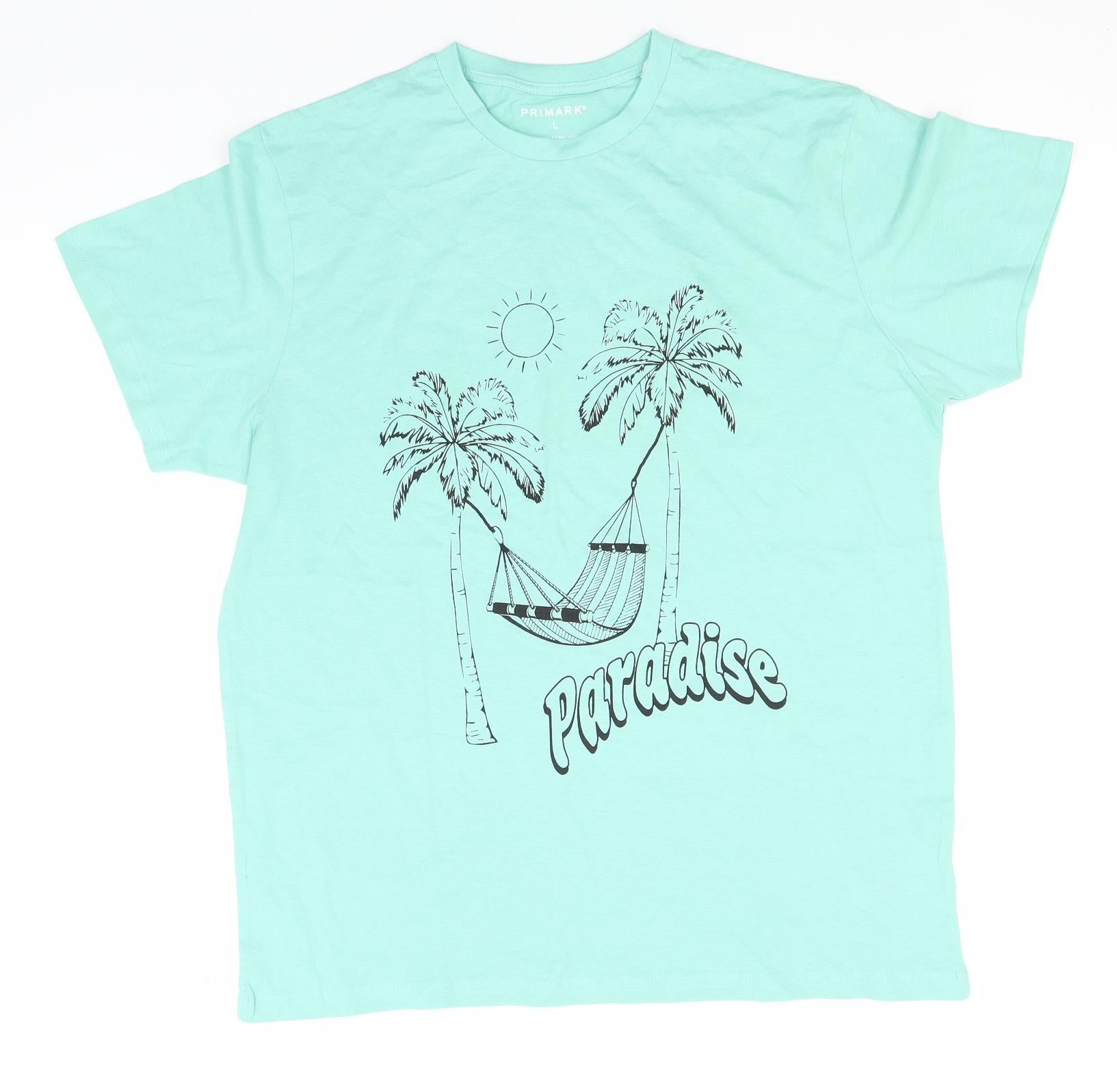 Primark Mens Green Cotton T-Shirt Size L Round Neck