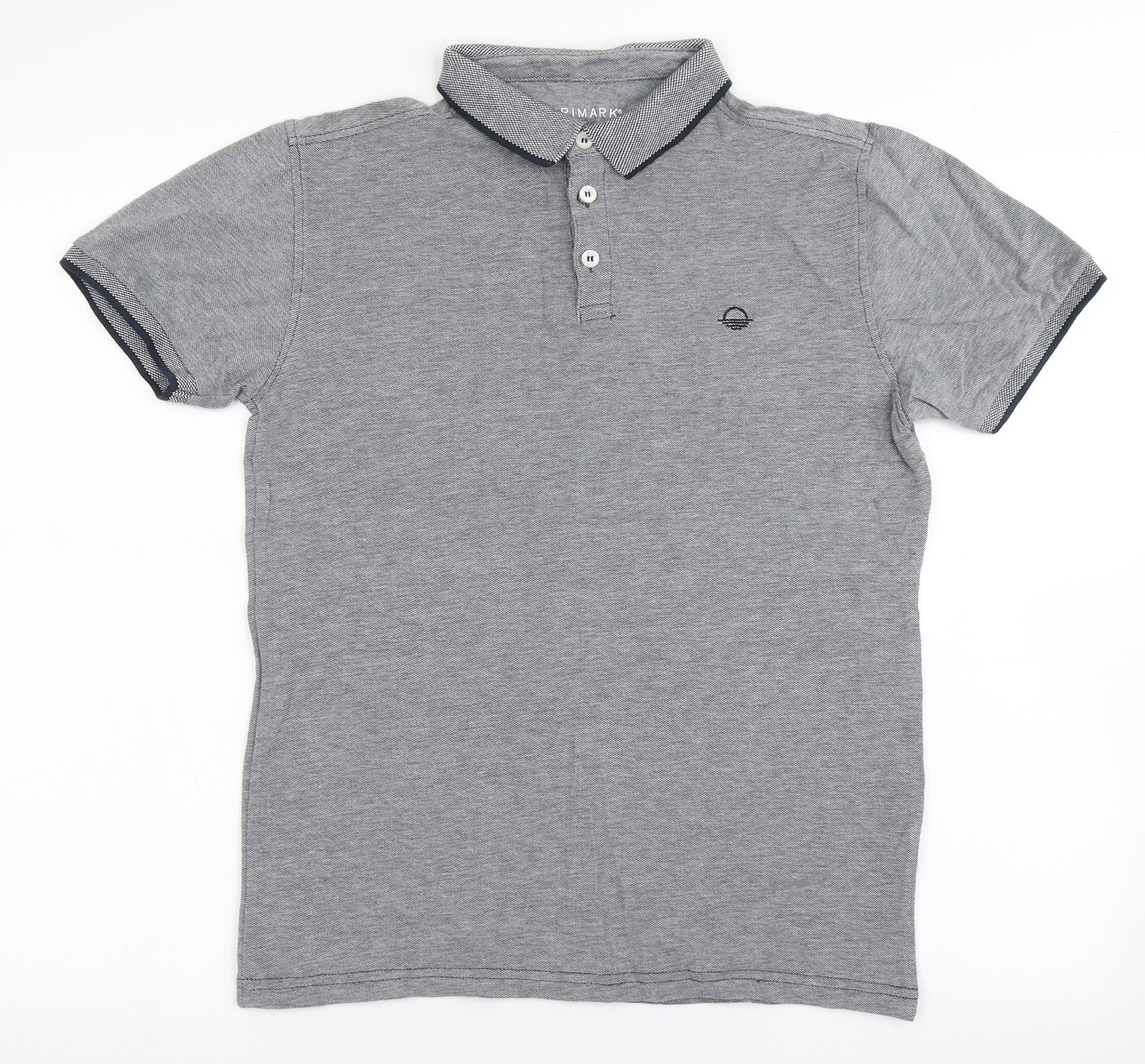 Primark Mens Grey 100% Cotton Polo Size XS Collared Button