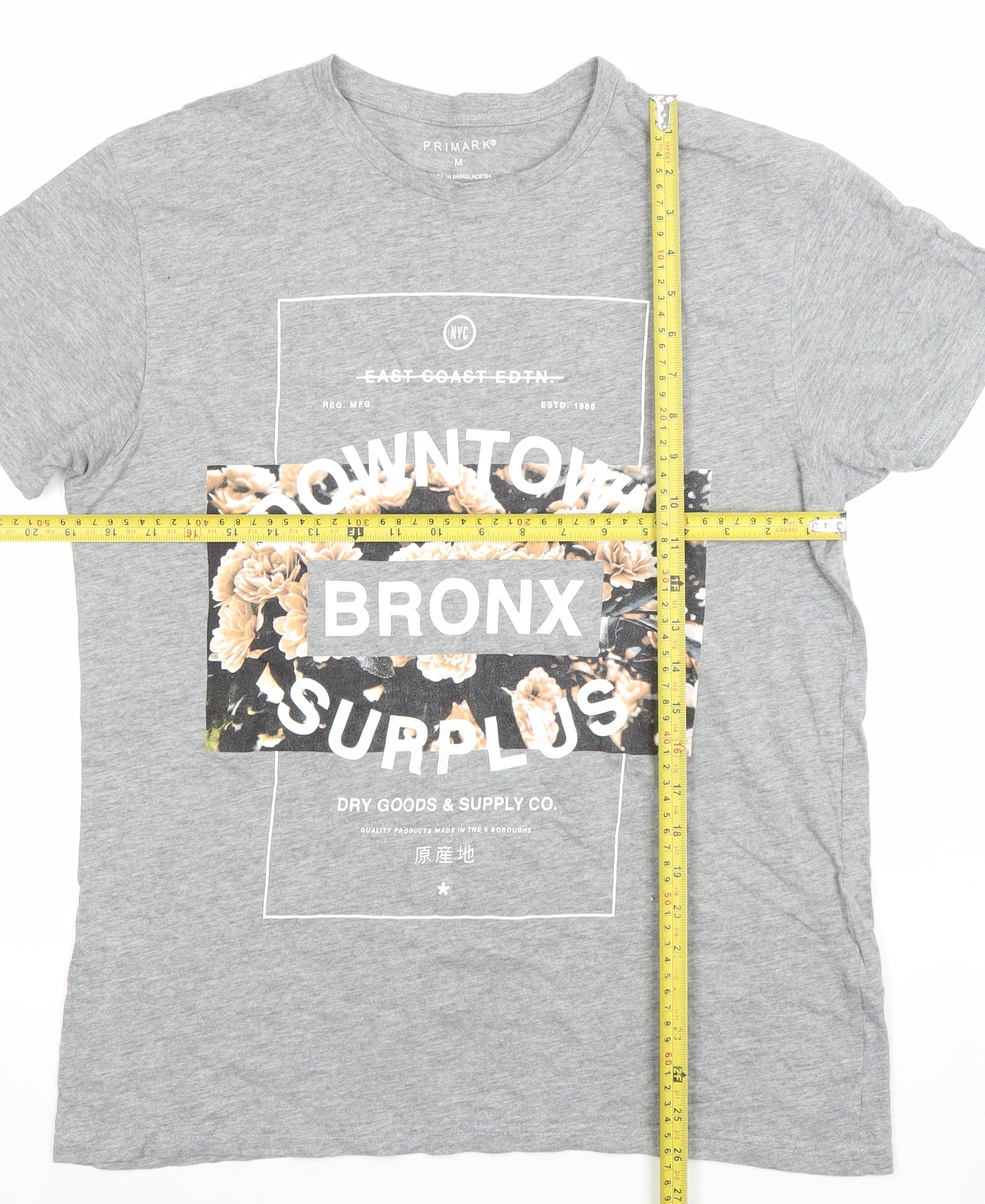 Primark Men's Grey Bronx Graphic Print Cotton T-Shirt Size M