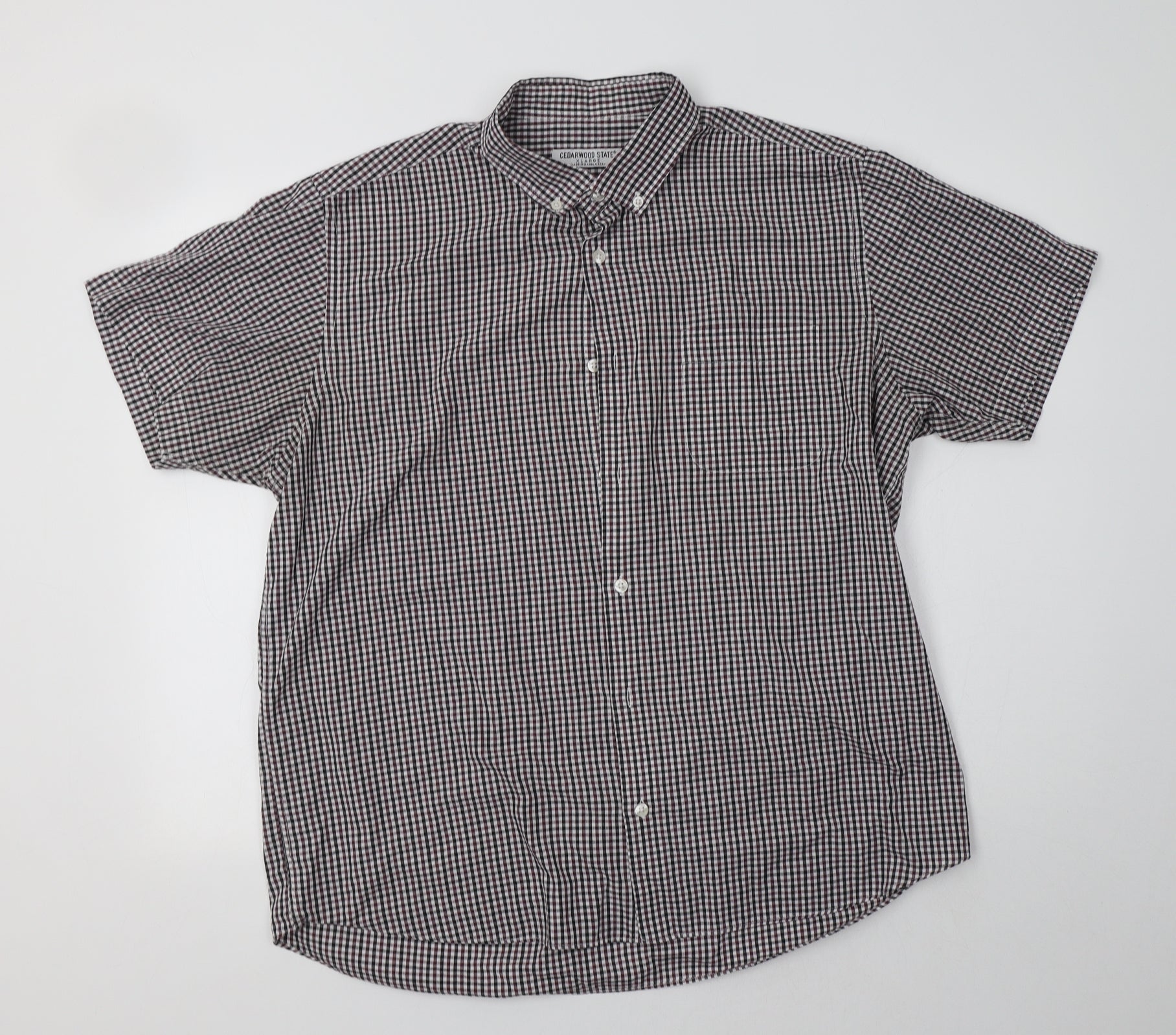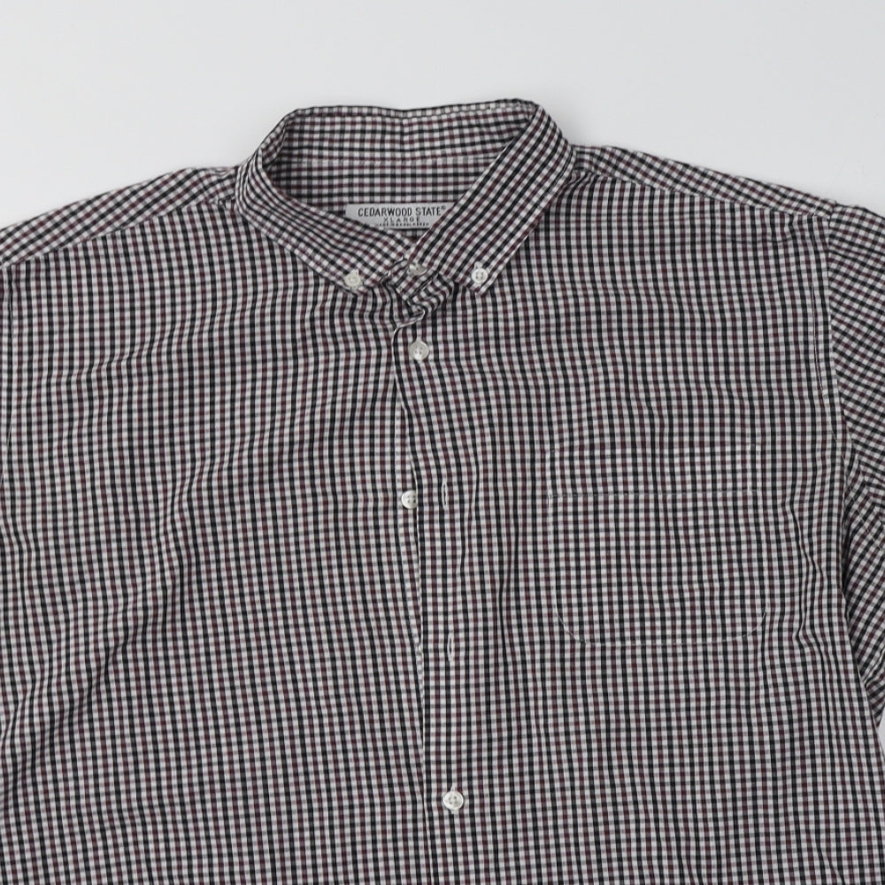 Primark Mens Grey Check Polyester Button-Up Size XL Collared
