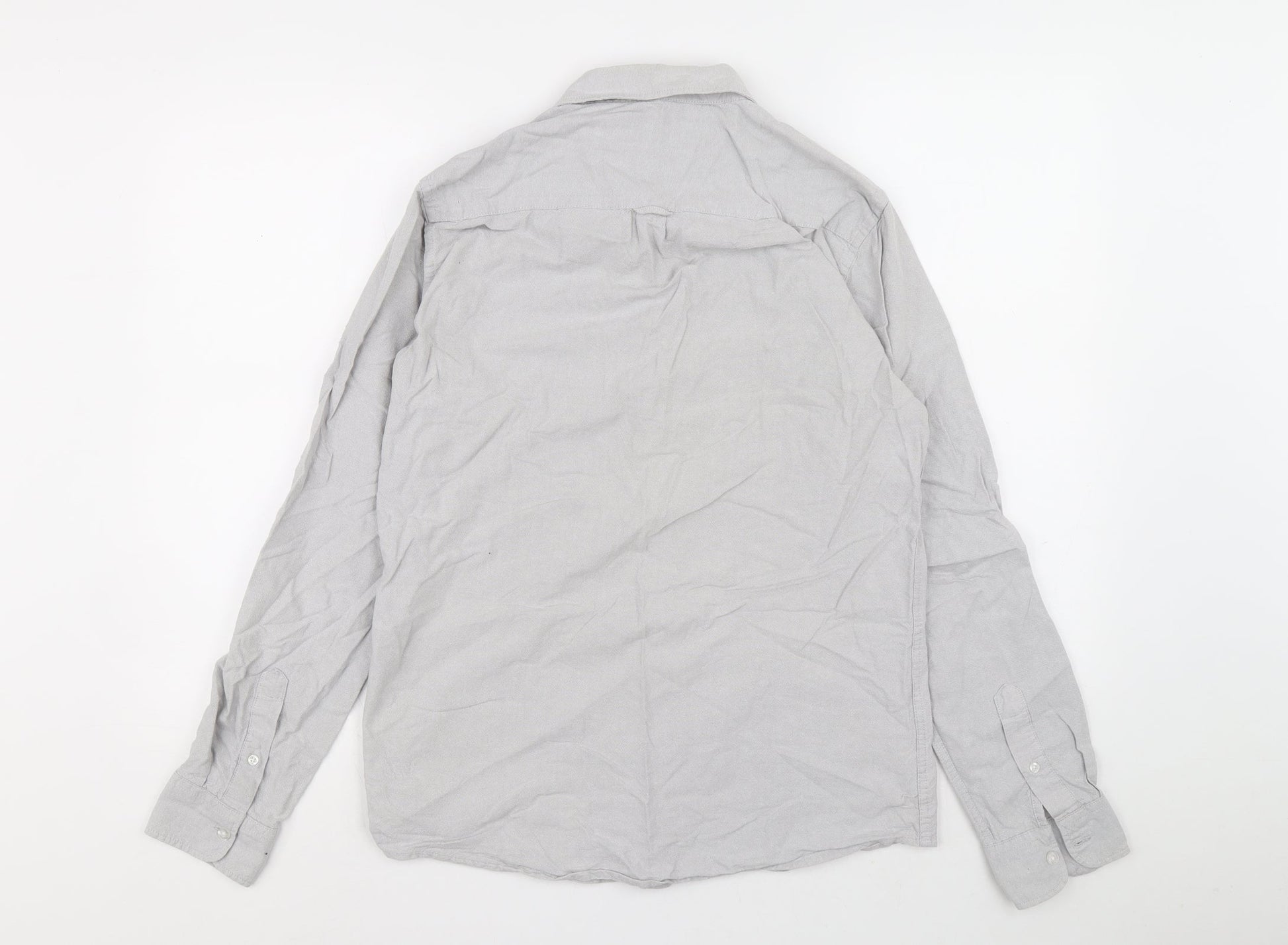 Primark Mens Grey Cotton Button-Up Size M Collared Button