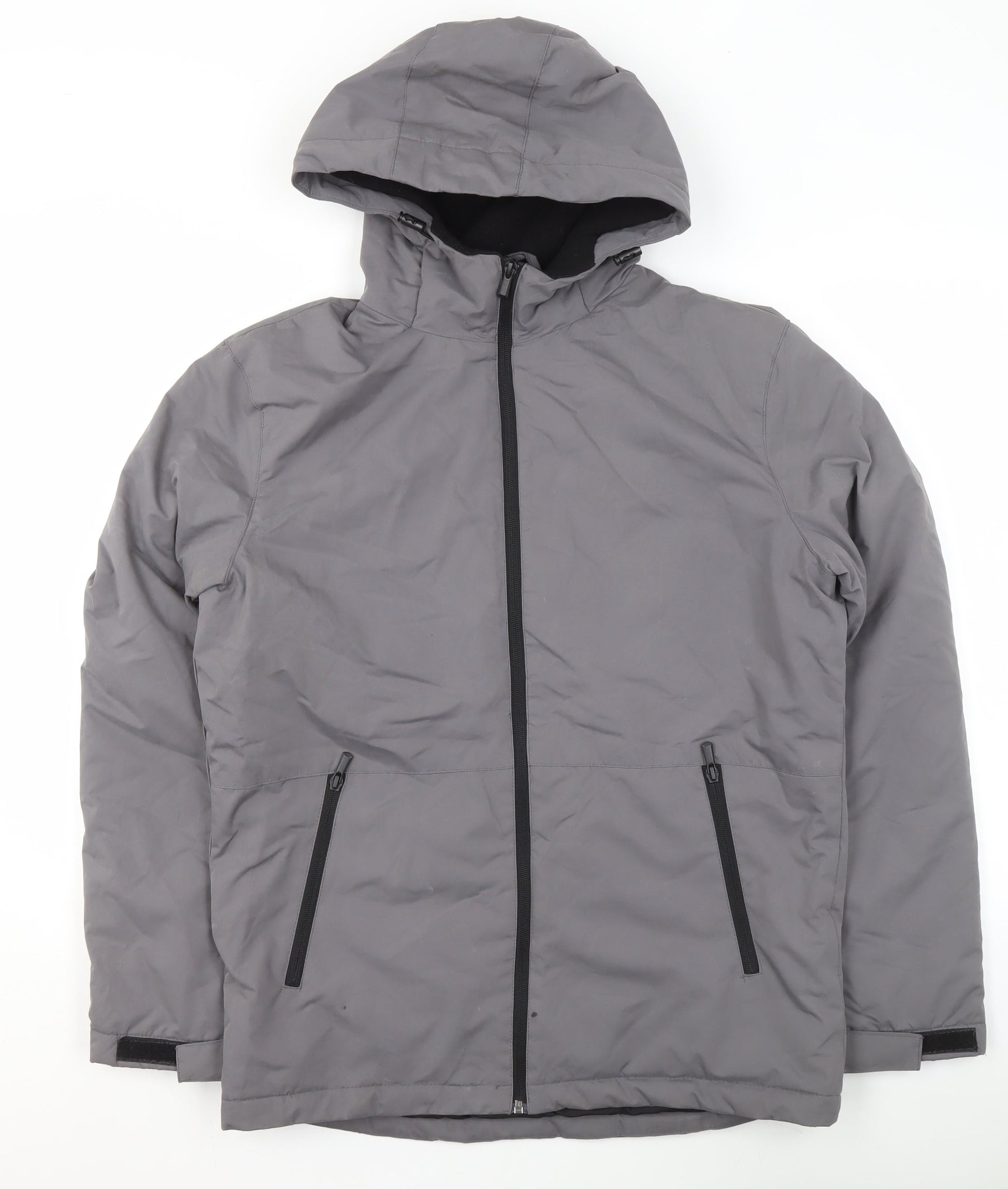 Primark Men's Grey Hooded Puffer Jacket Size S Water Resistant