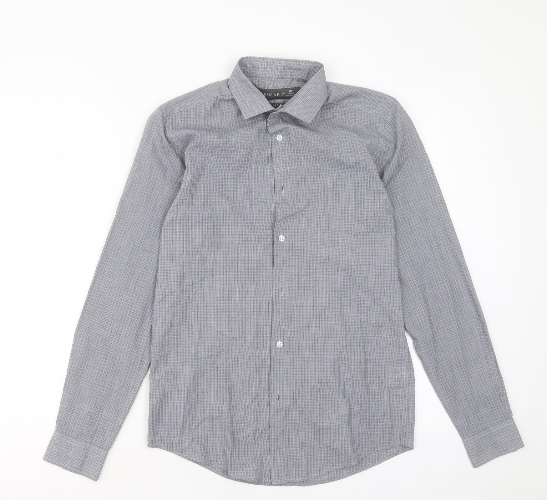 Primark Mens Grey Plaid Cotton Button-Up Size 14.5 Collared Button