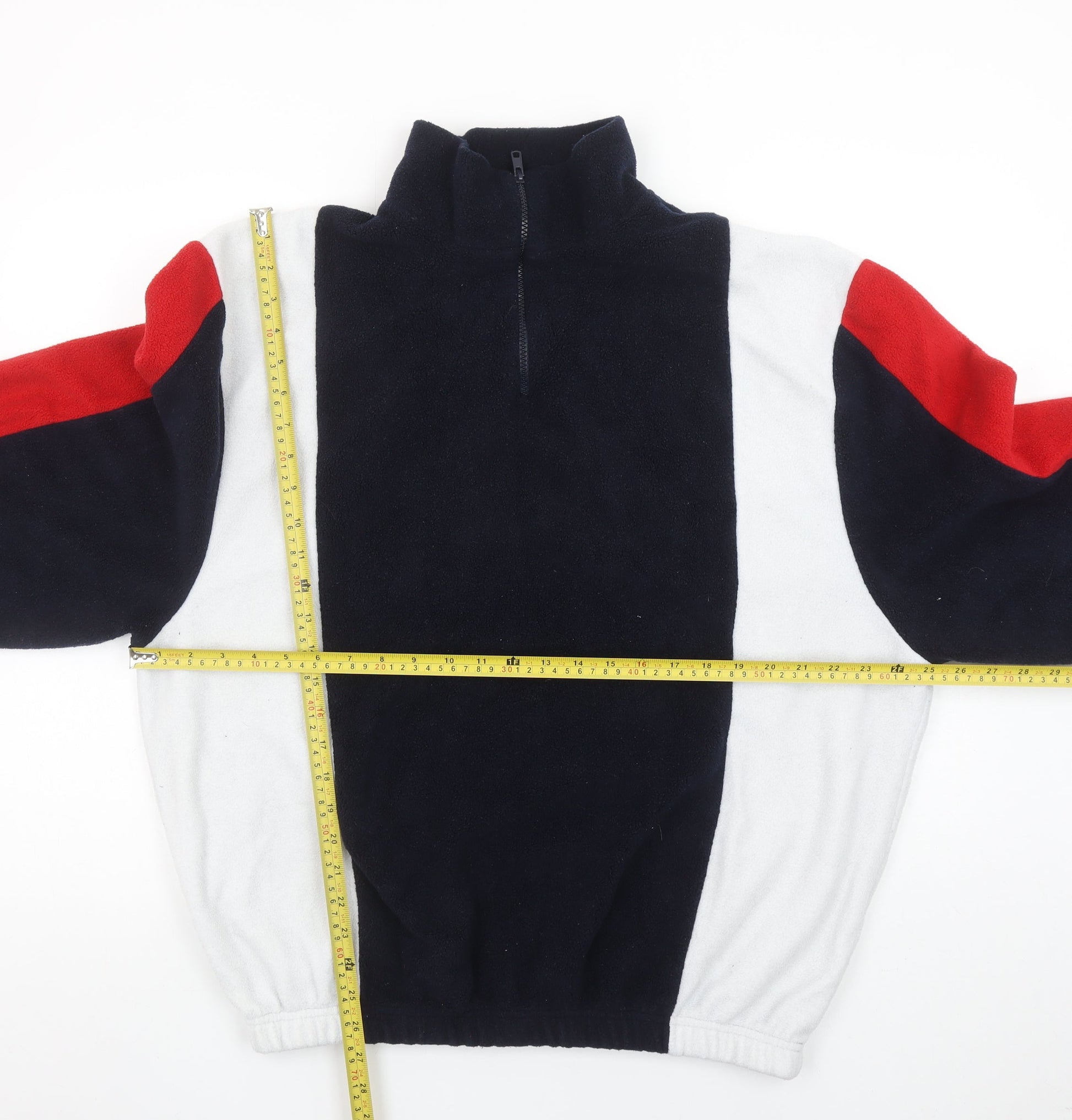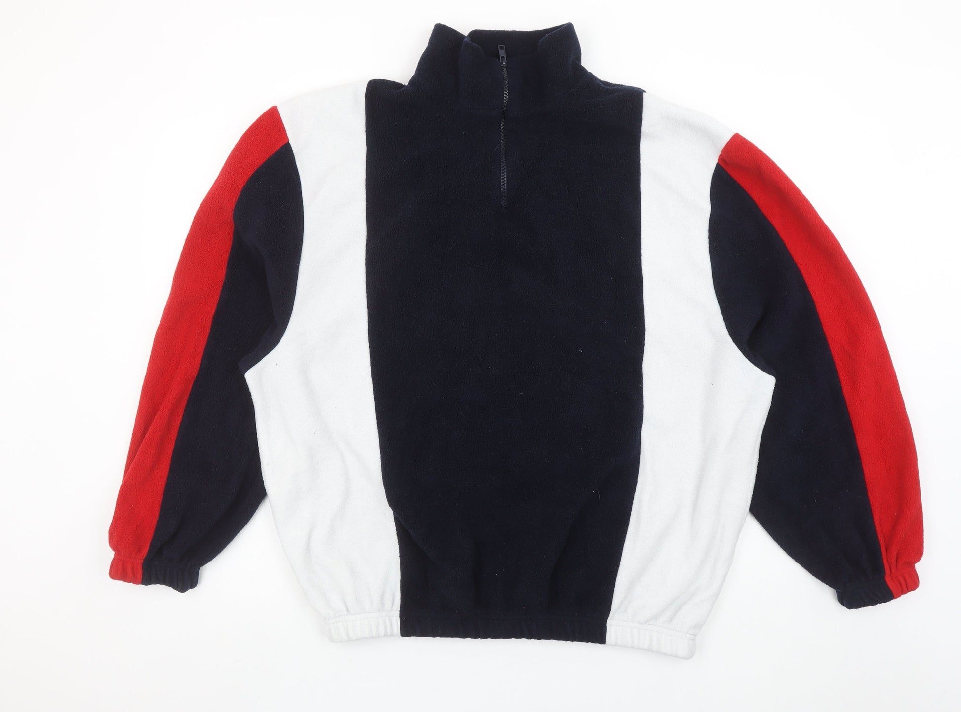 Primark Men's Multicoloured Fleece 1/4 Zip Sweatshirt XL Retro Style