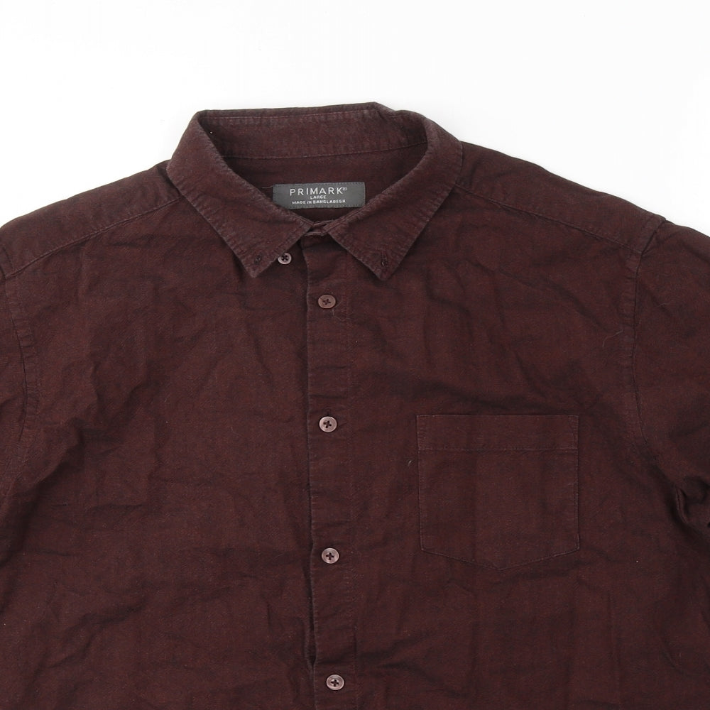 Primark Mens Red Cotton Button-Up Size L Collared Button