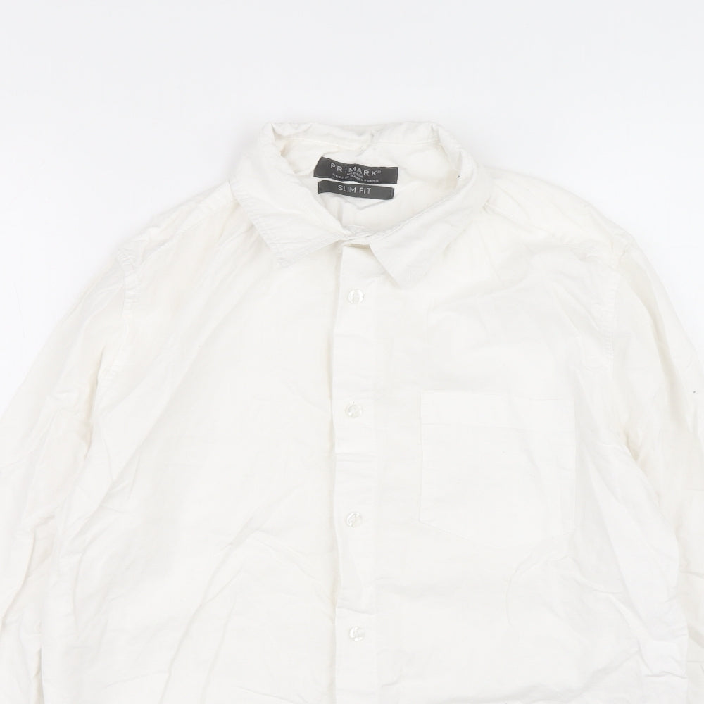 Primark Mens Silver Cotton Button-Up Size M Collared Button