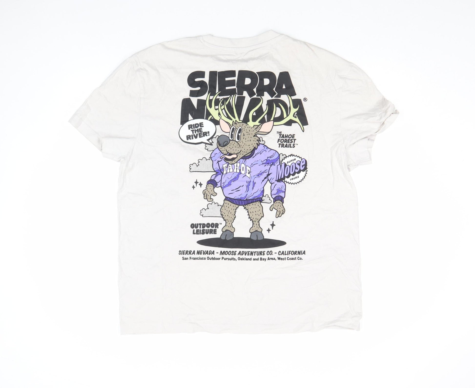 Primark Men's White L Graphic Moose Sierra Nevada Funny T-Shirt