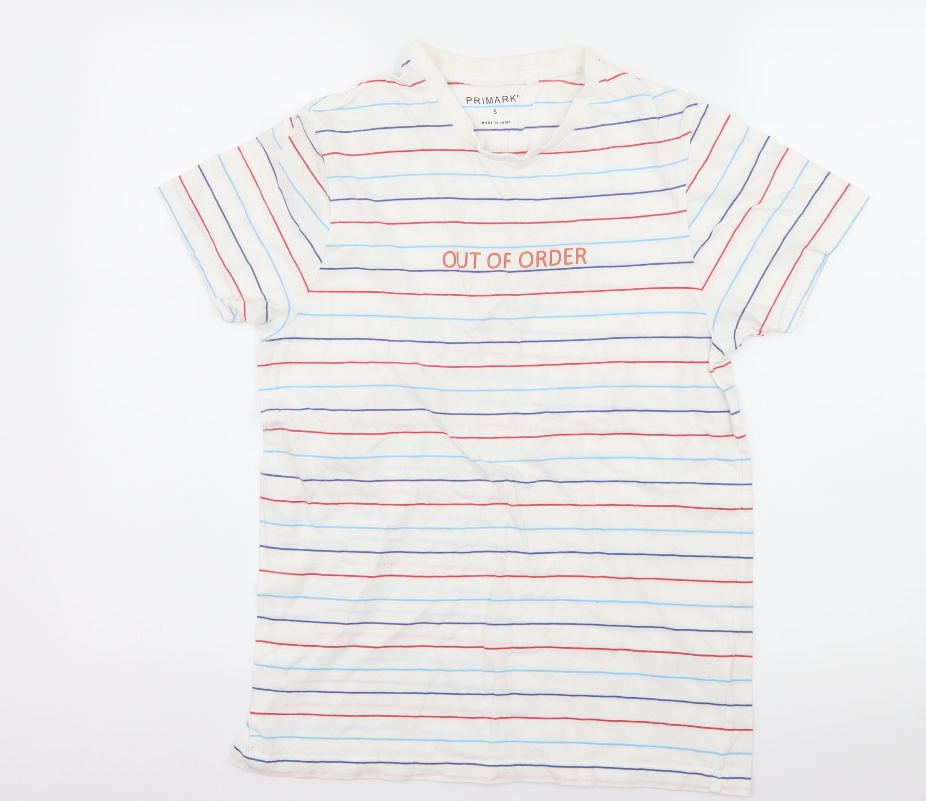 Primark Mens White Striped Jersey T-Shirt Size S - Out of Order