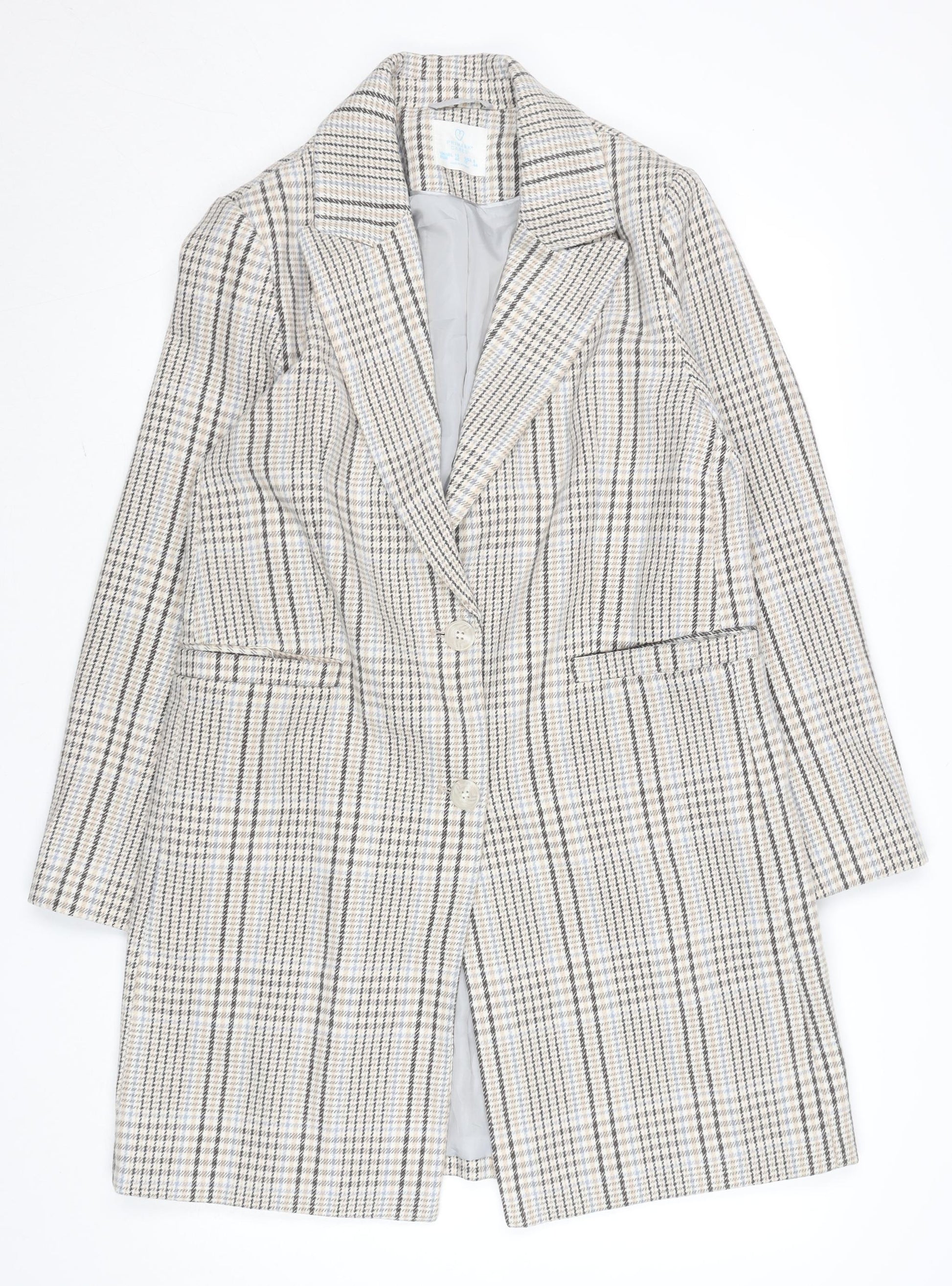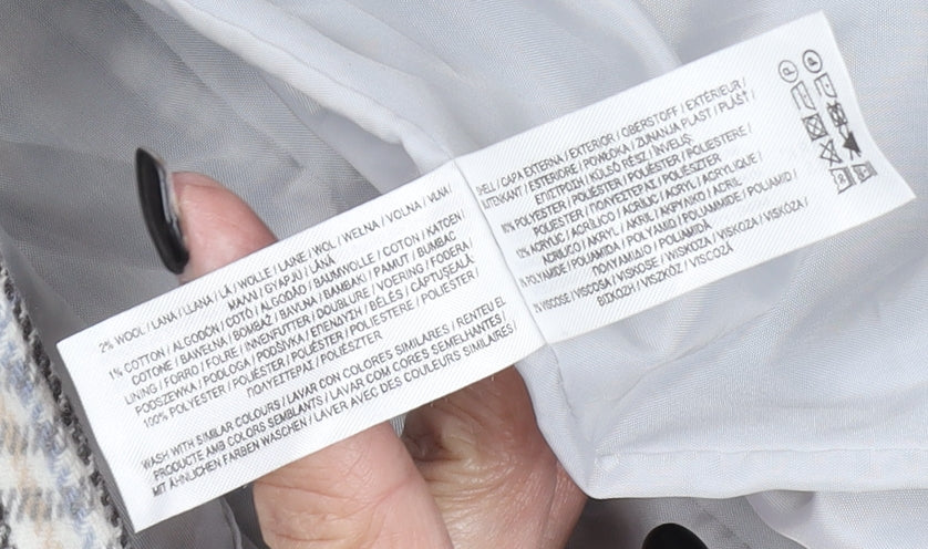 Primark Women Beige Checked Wool Blend Mid-Length Coat Size 12