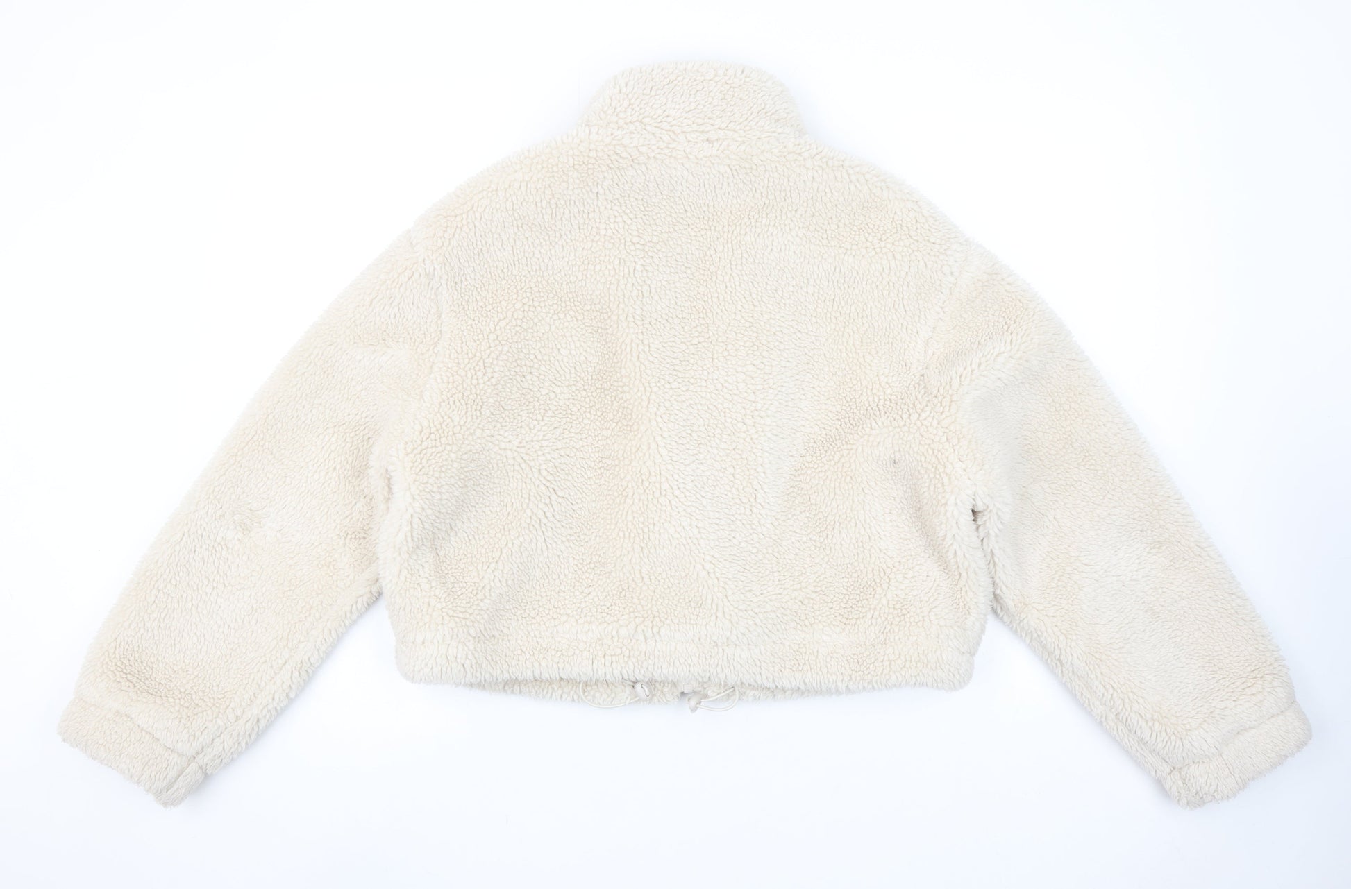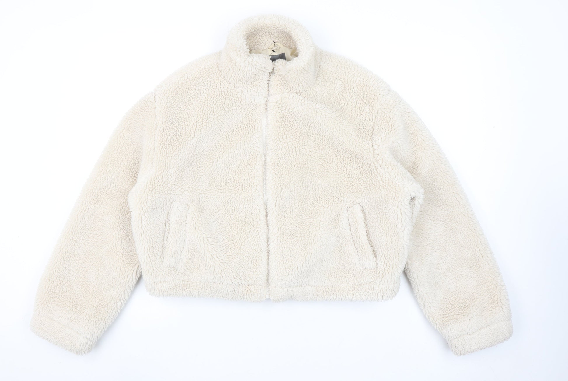 Primark Women Beige Cropped Fleece Zip Jacket Size M 12/14
