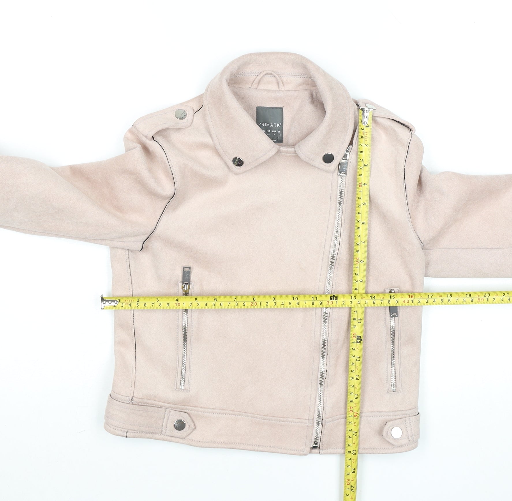 Primark Women Beige Faux Suede Biker Jacket Size 12 Zip Short