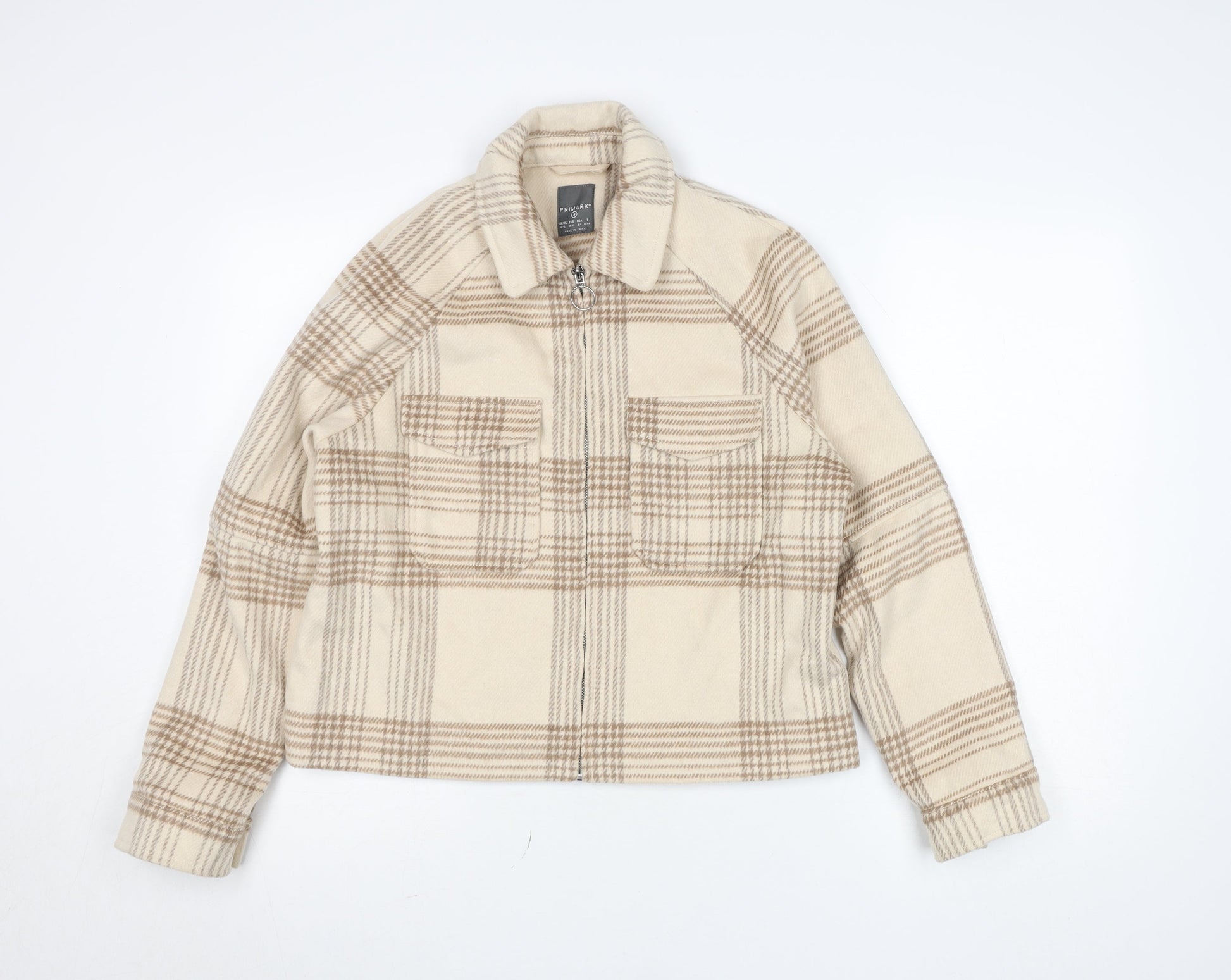 Primark Women Beige Plaid Wool Blend Lined Short Jacket S