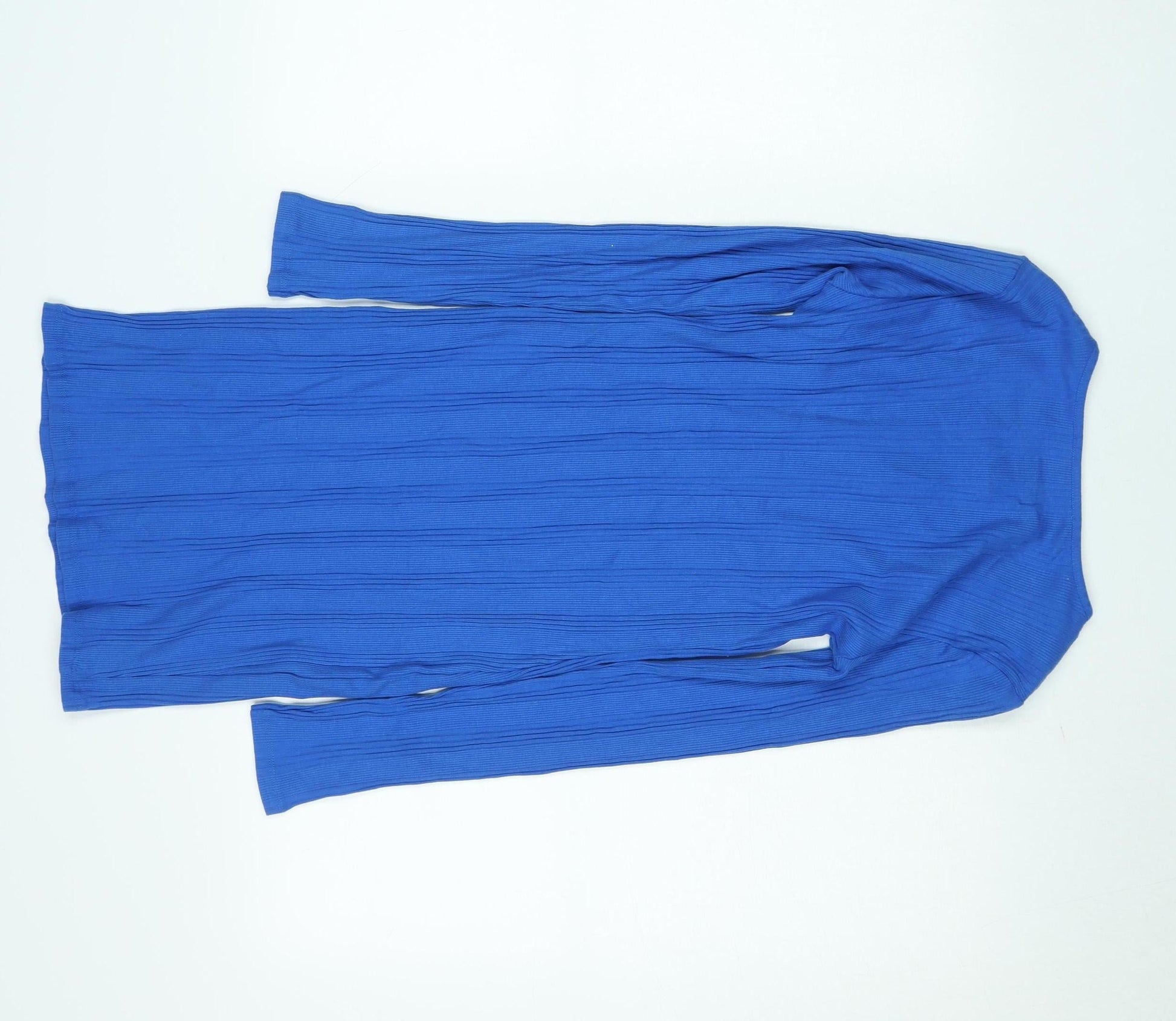 Primark Women Blue Cotton Bodycon Ribbed Long Sleeve Dress Size 10